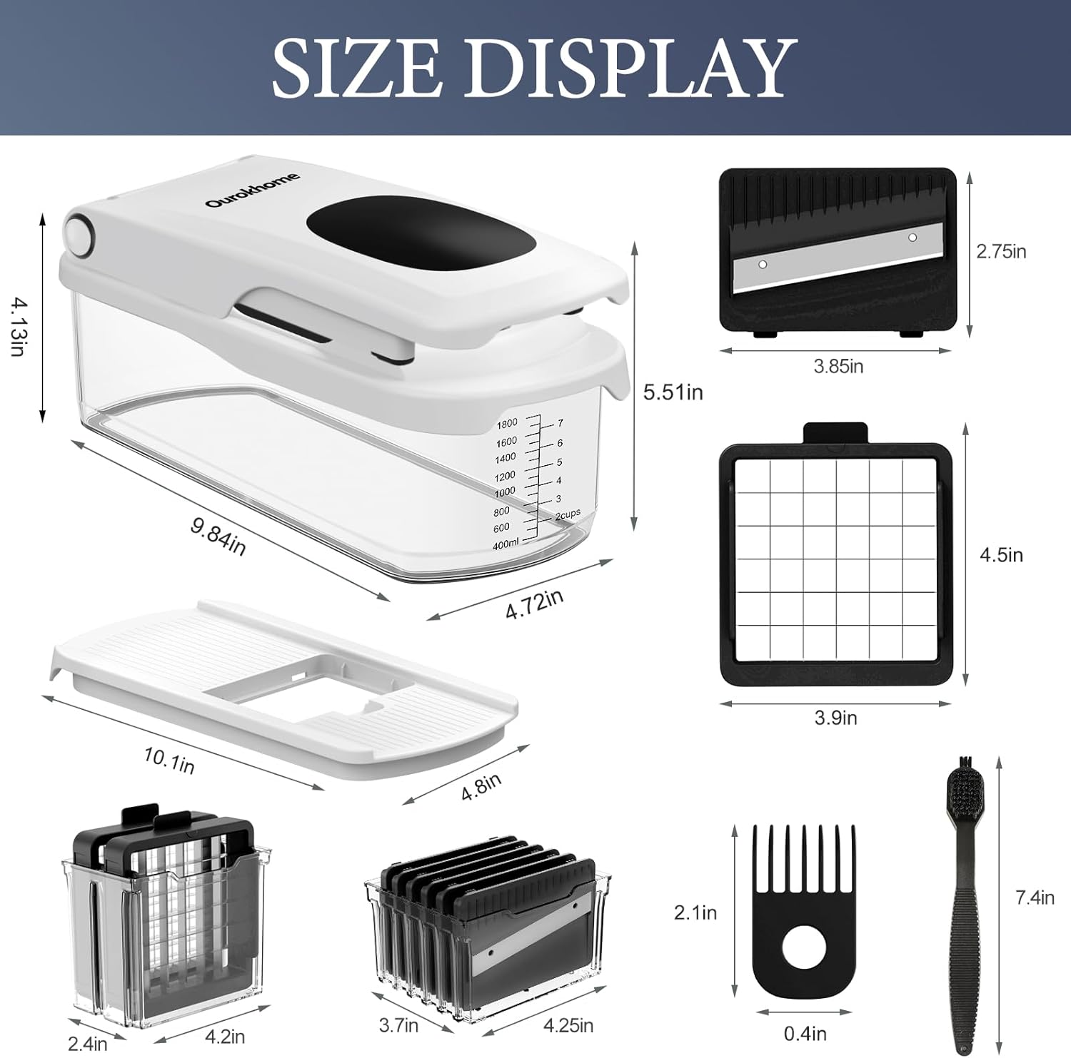 • A kitchen essential gadgets - The expanded hand guard ensures the safety of your fingers, while its detachable design facilitates easy cleaning. Whether you're a novice cook or a seasoned pro, the Ourokhome 8 in 1 food chopper with mandolin slicer is a must-have in any kitchen. It's versatile, easy and safe to use and store, and backed by our satisfaction