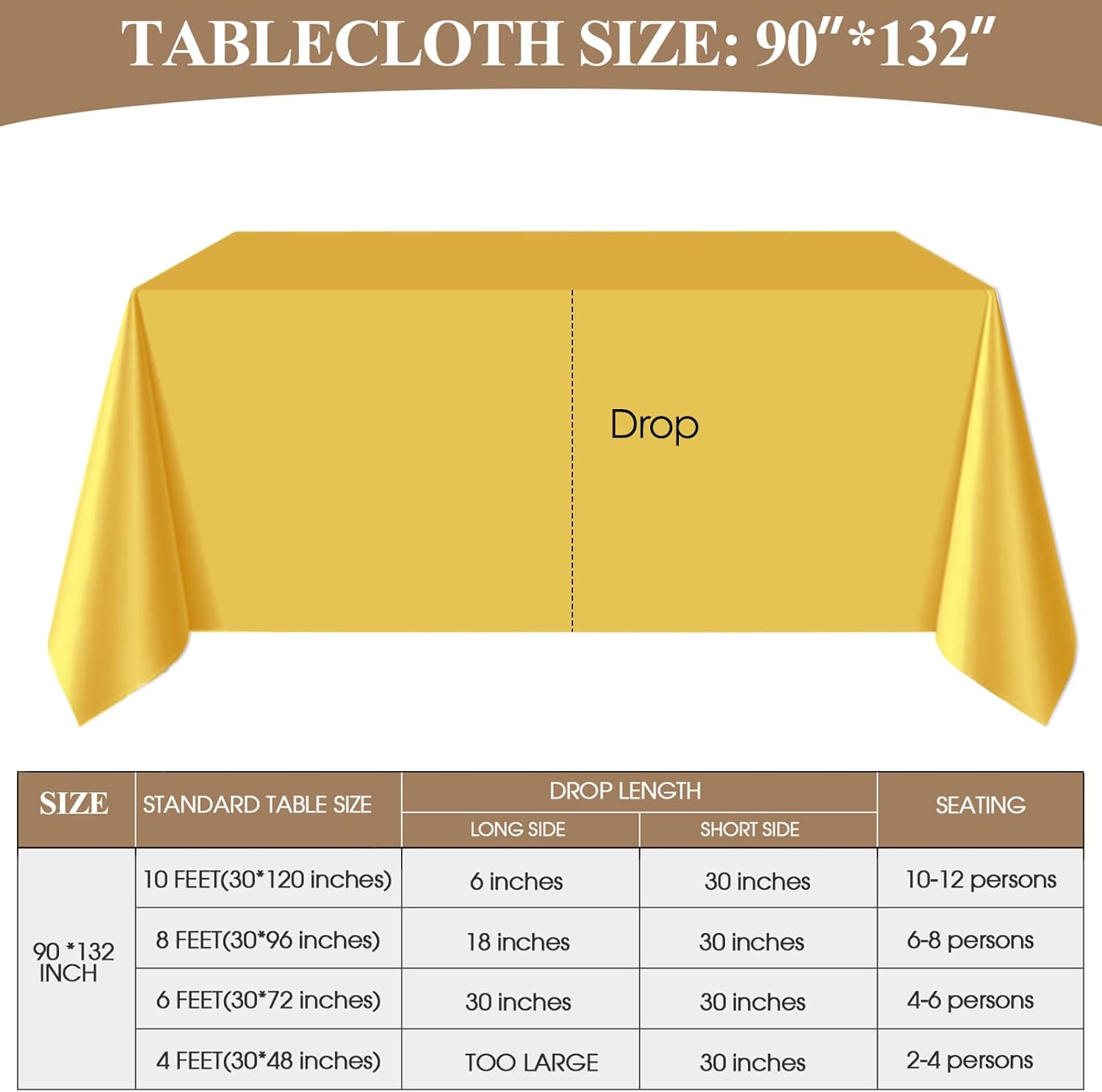 • Suitable Size: This 90*132 inch tablecloth from Aocoz is suitable for rectangular tables of 6ft and 8ft, please carefully measure the size of your table before purchasing to avoid buying an unsuitable tablecloth