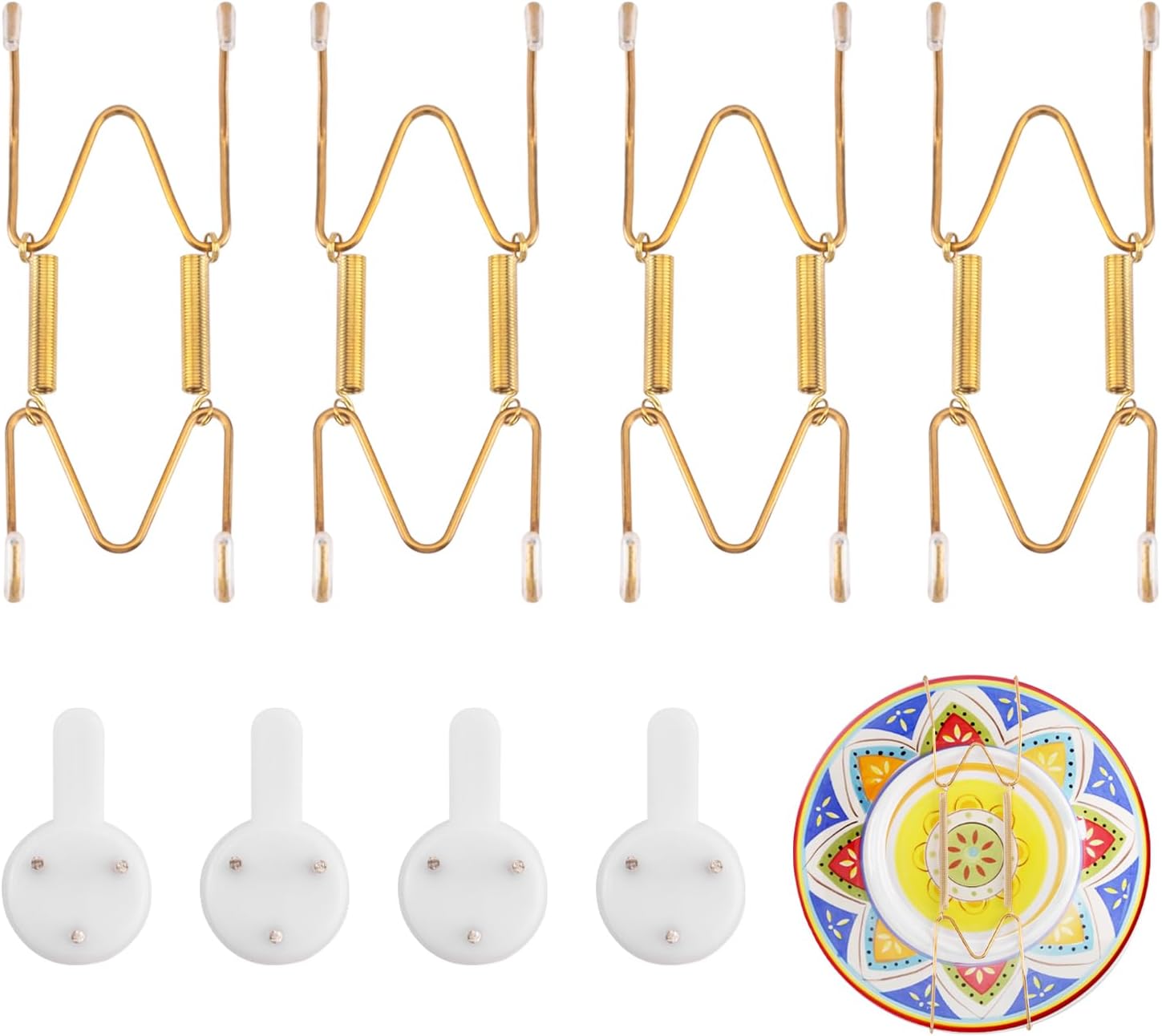 4 Pack Plate Hangers for The Wall Suitable for 4 inch Small Decorative Plate, Invisible Stainless Steel Plate Hangers for Display with Wall Hooks, for Plates/Platter/Dish/Picture