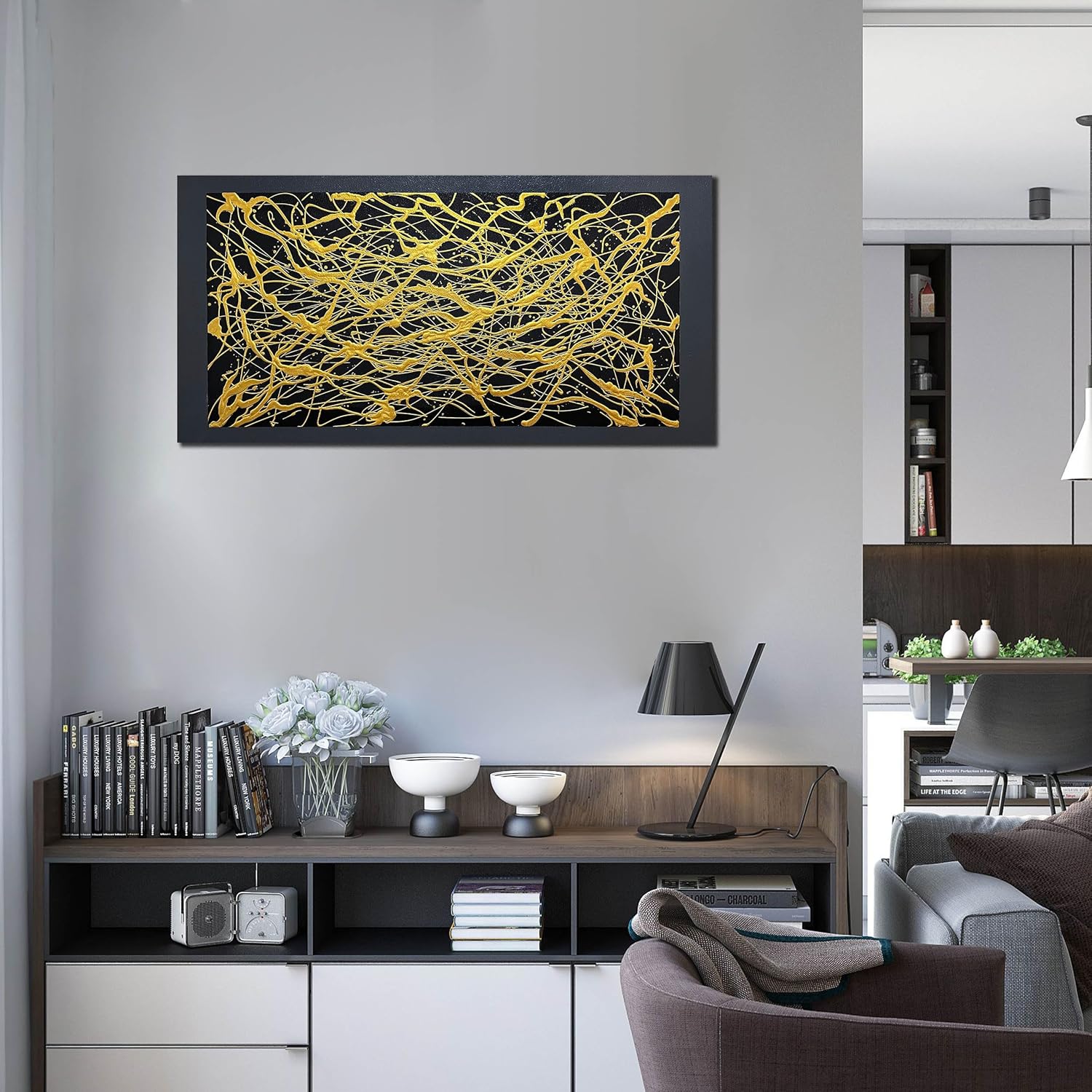 • 【black and gold abstract Canvas Mural Size】The size is 24" x 47". Since each painting is hand-painted, 3D textured canvases, the actual painting may differ slightly from the product image. Due to different monitor brands, the actual wall painting color may be slightly different from the product picture.