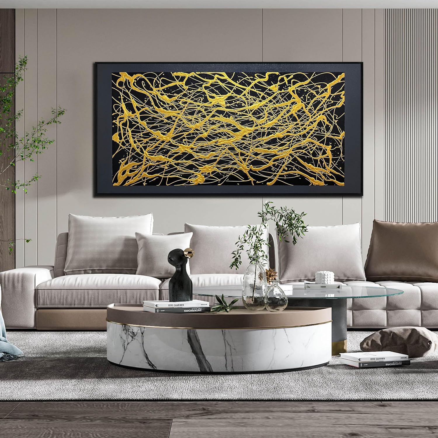 • 【black and gold abstract Canvas Mural Size】The size is 59" x 29". Since each painting is hand-painted, 3D textured canvases, the actual painting may differ slightly from the product image. Due to different monitor brands, the actual wall painting color may be slightly different from the product picture.