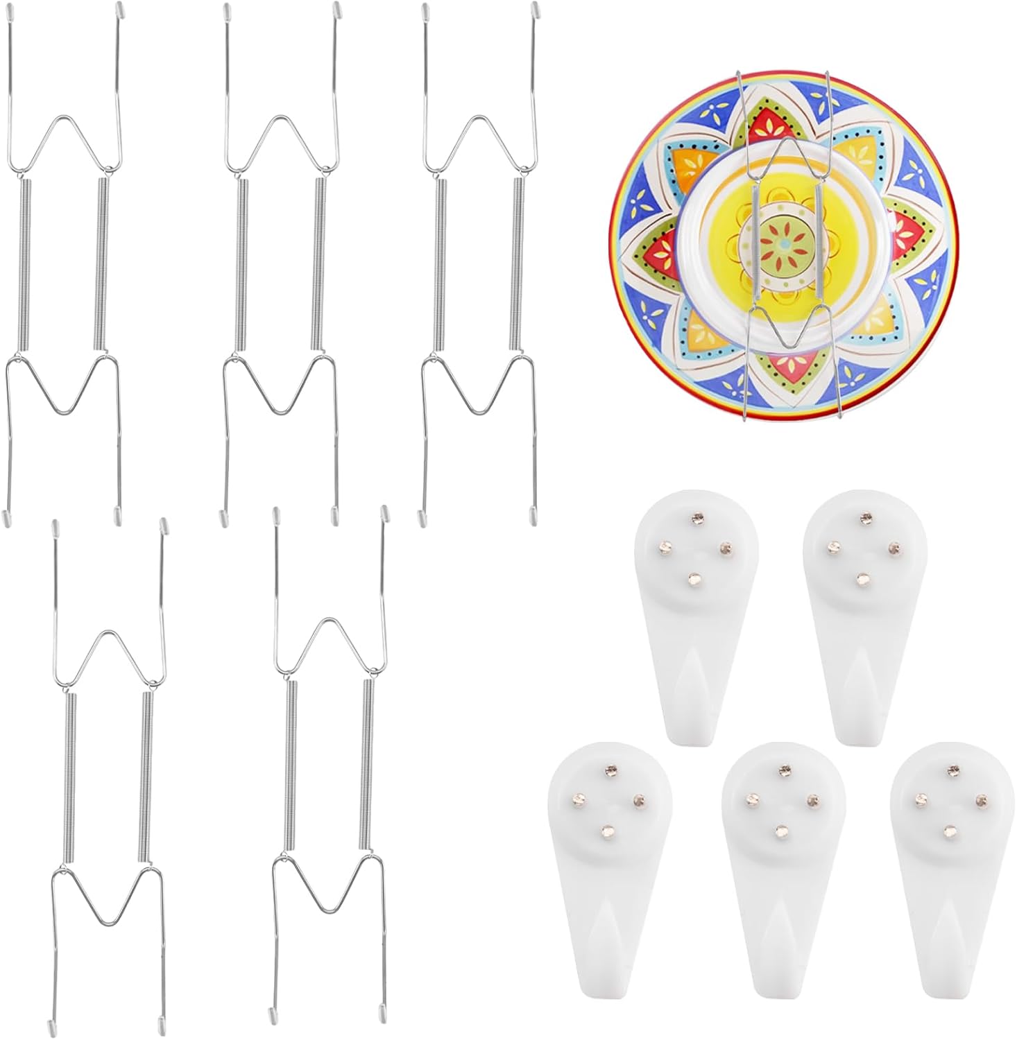 5 Pack Plate Hangers for The Wall Suitable for 9-11 inch Small Decorative Plate, Invisible Stainless Steel Plate Hangers for Display with Wall Hooks, for Plates/Platter/Dish/Picture(Silver)