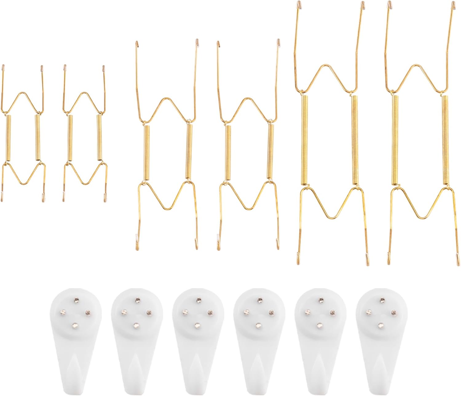 • 【Plate Hangers for The Wall】 You will receive 6 plate hangers in 3 sizes: 2 pcs for 6"-8" plates、2 pcs for 8"-10" plates、2 pcs for 9"-11" plates. Included accessories: 6 wall hooks、24 rubber tip protectors (4 per hanger)、1 instruction manual. Safety Note: These hangers have spring-loaded clamps—handle with care to avoid pinching your fingers.