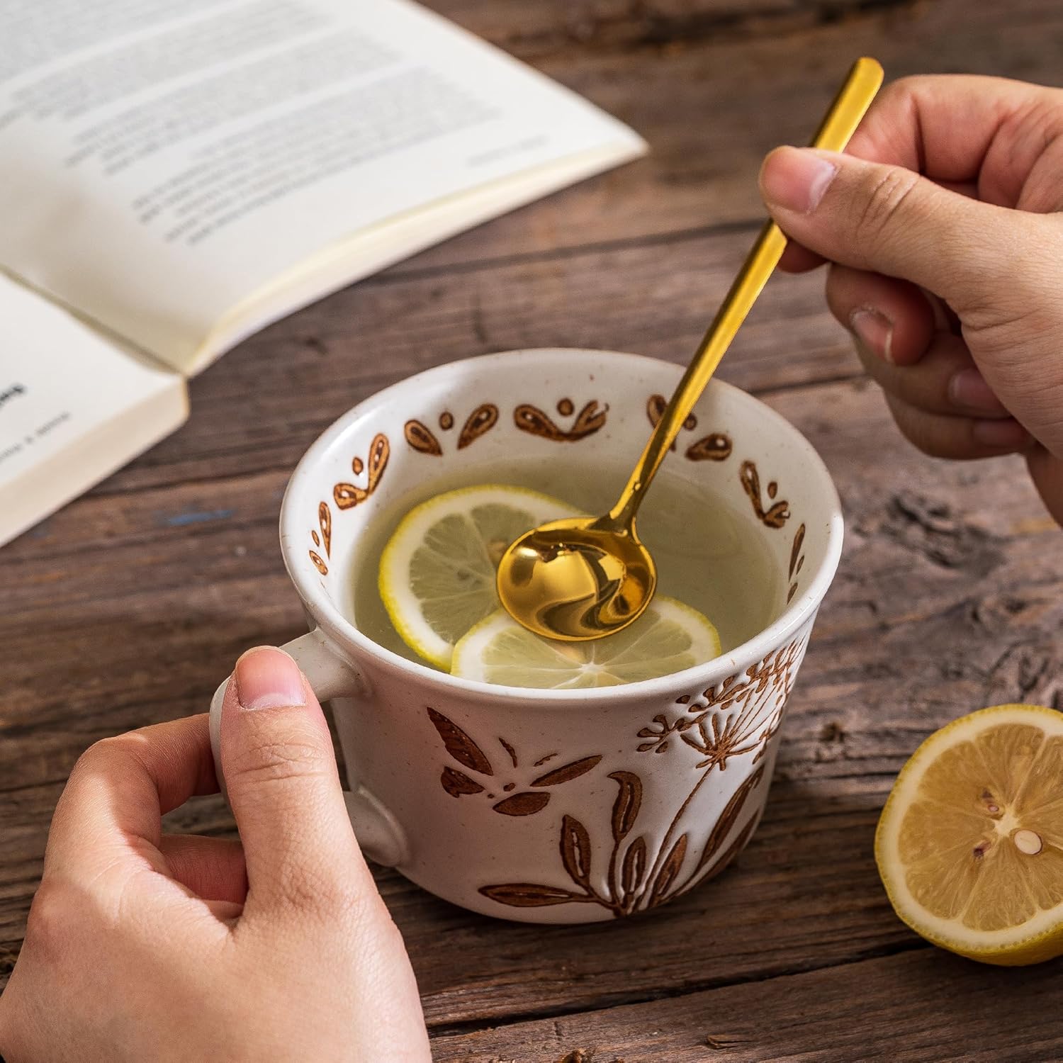 • Premium Ceramics: Our ceramic cup sets each come with two ceramic cups and two spoons, and each cup has a capacity of 11.6 ounces. Made of high-grade ceramic, these cups are not only durable, but also lead-free and non-toxic, standing up to the rigors of everyday use. Whether it's a busy weekday or a lazy weekend brunch, these cups won't let you down, and you can enjoy your favorite drink with peace of mind.