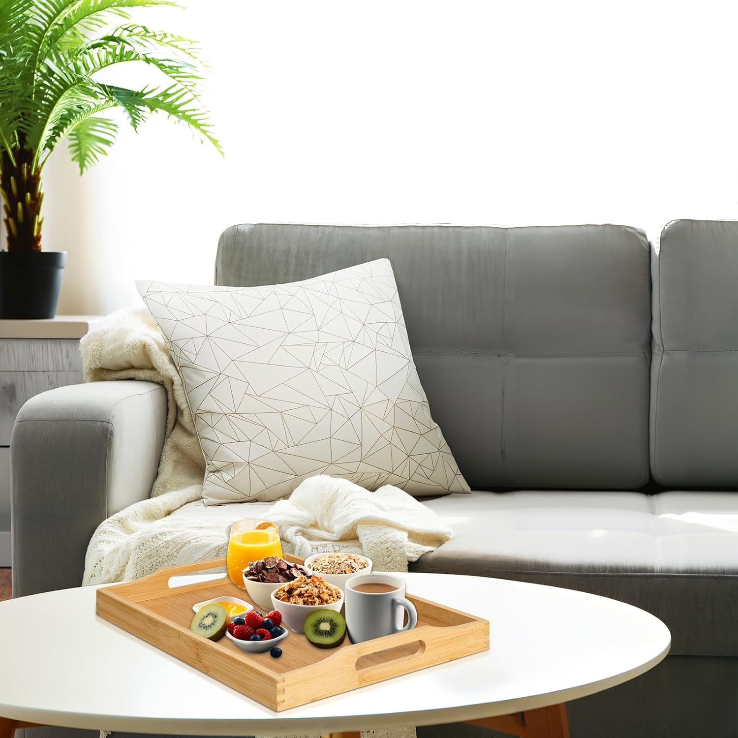 Bamboo Food Serving Tray with Handles, Breakfast Bed Tray for Tea,Snack,Dinner, Home Decorative Storage Food, Platter, Ottoman for Kitchen Counter, Bathroom, Restaurant (Beige)