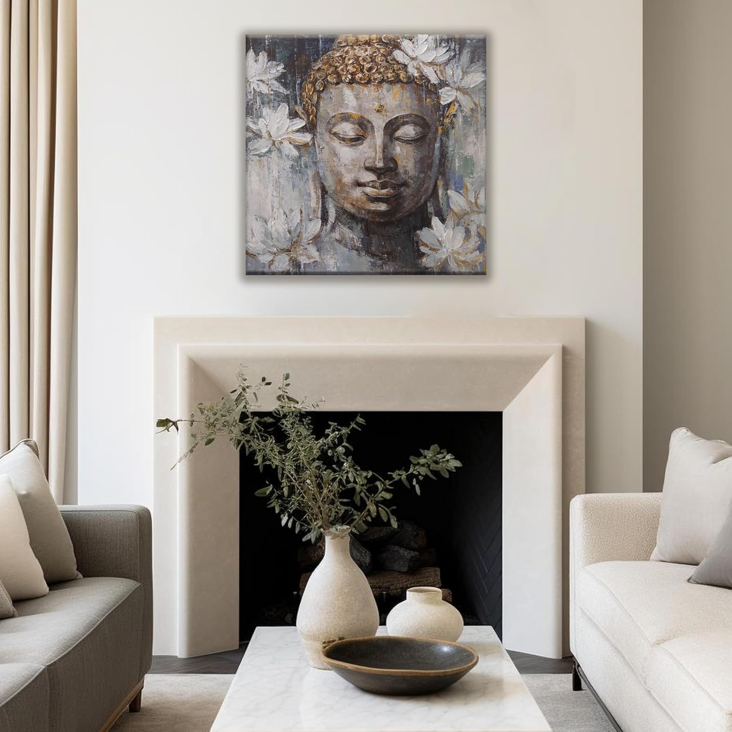 Canvas Wall Art Brown Wall Art Decor Buddha Wall Decor Aesthetic Art Work for Wall Decor 13"x13" Modern Home Decor Wall Prints Small Wall Art Decor for Bedroom Bathroom Room Kitchen Wall Decor