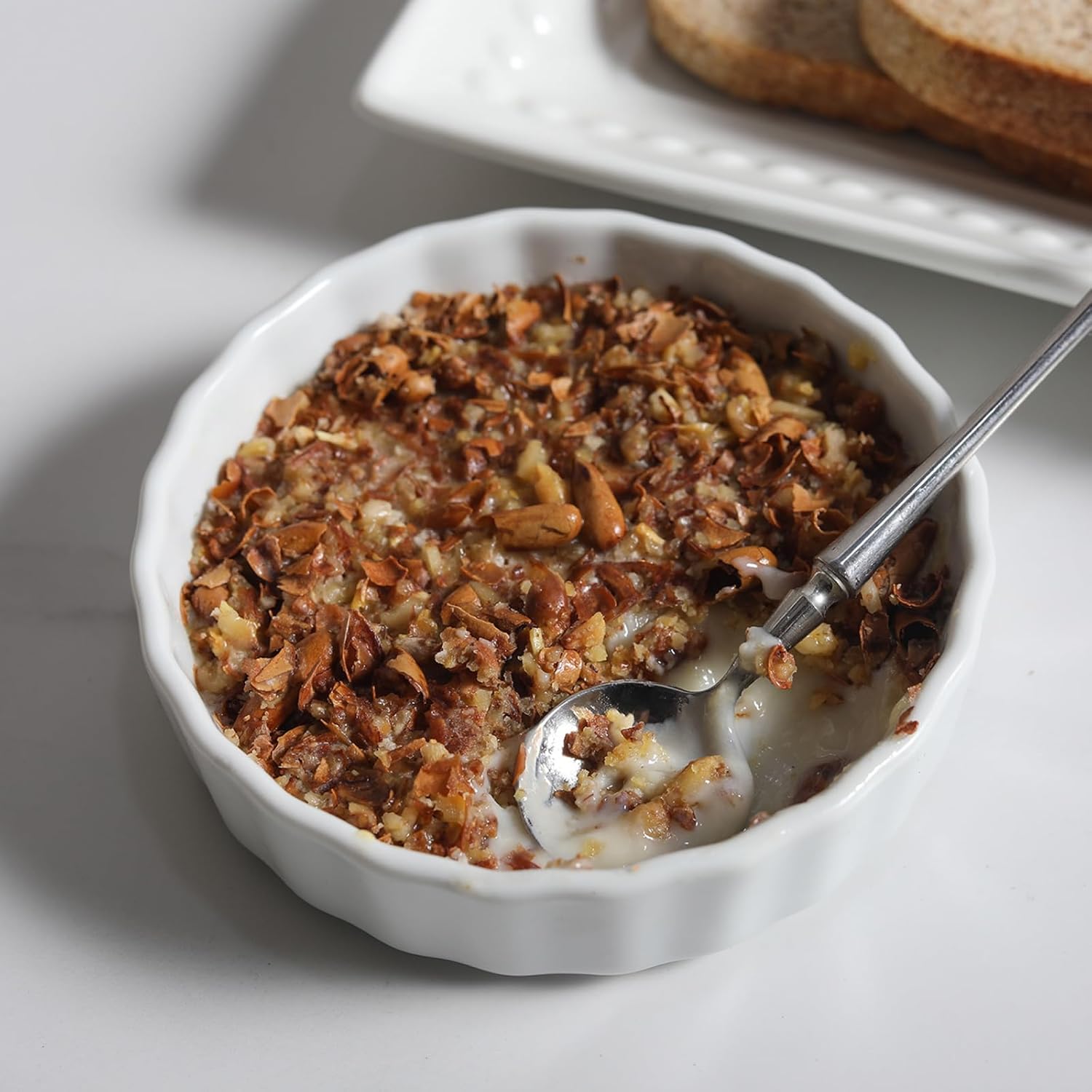 • 6oz Dessert Baking Dishes: Each ramekin holds 6oz for creme brulee, mini pies, tarts, or custards, ideal for single-serve desserts or party appetizers.Eeach baking dish 4.5" diameter fits standard baking sheets while the wave edge assures elegant dessert presentation