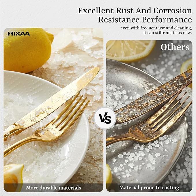 • Engineered for Precision: This utensil sets has thick, balanced grips (knife: 9.0mm, forks/spoons: 4-5mm) ensure superior control during meals, from casual dinners to gourmet plating.