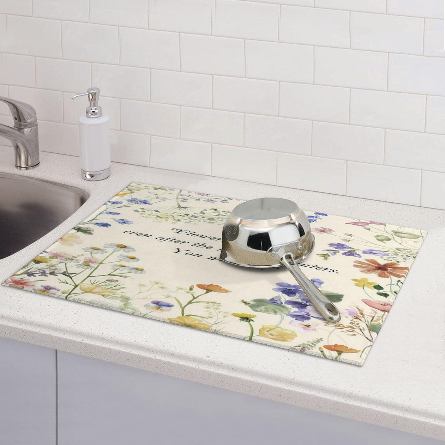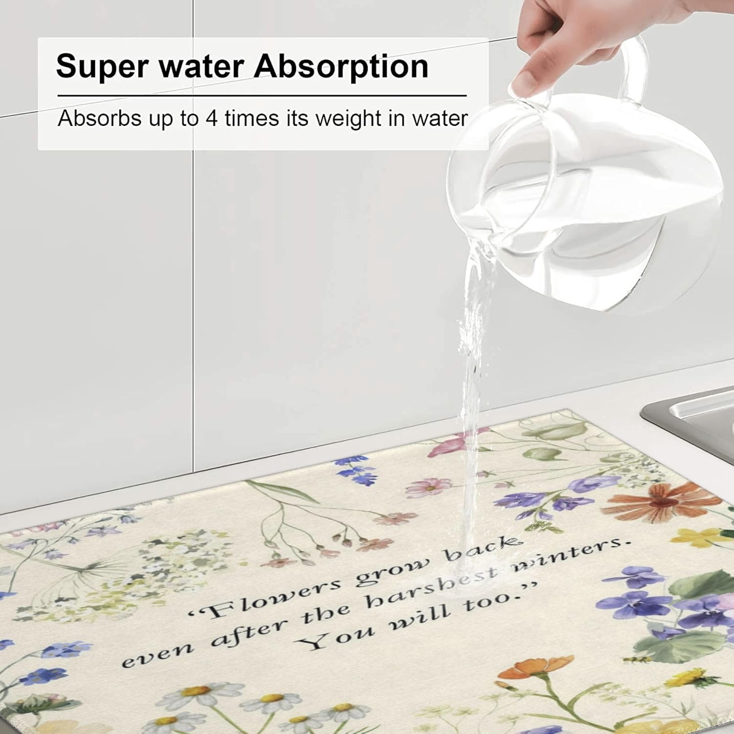 Inspirational Flower Language Dish Drying Mat 18x24 Inch, Microfiber Absorbent Fast Dry Mat Daisy Floral Large Dish Mat Drying Kitchen Mat, Kitchen Drying Pad for Kitchen Counter Decor