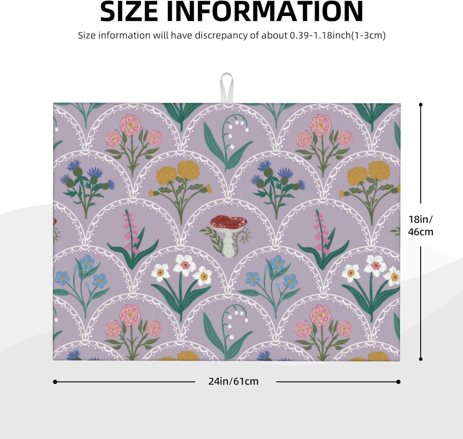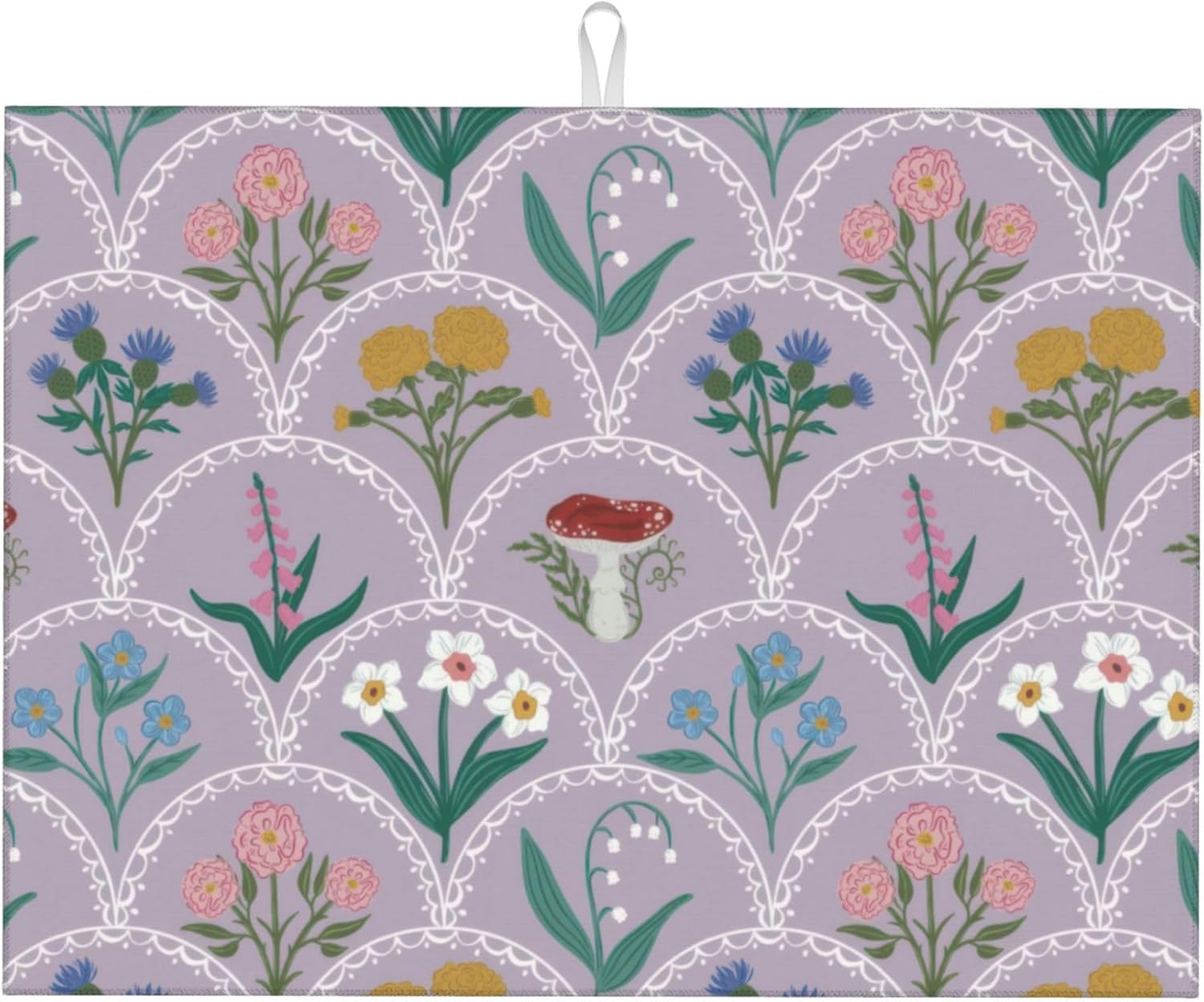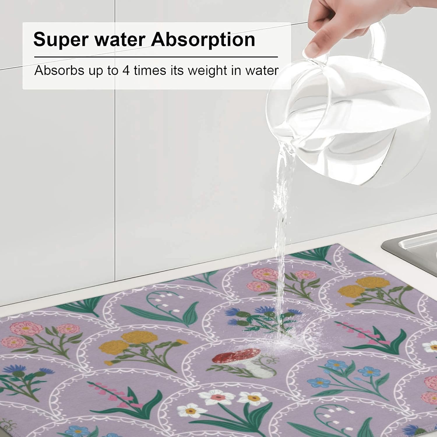 Vintage Flowers Dish Drying Mat 18x24 Inch, Microfiber Absorbent Fast Dry Mat Mushroom Floral Large Dish Mat Drying Kitchen Mat, Kitchen Drying Pad for Kitchen Counter Coffee Bar Decor Gifts
