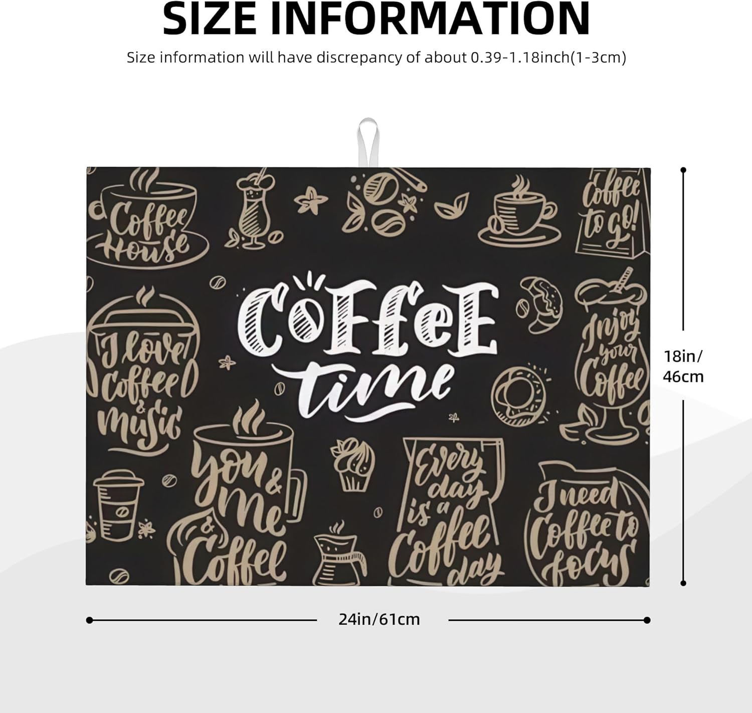 Coffee Time Dish Drying Mat 18x24 Inch, Microfiber Absorbent Fast Dry Mat Large Dish Mat Drying Kitchen Mat, Kitchen Drying Pad for Kitchen Counter Coffee Bar Decor Gifts