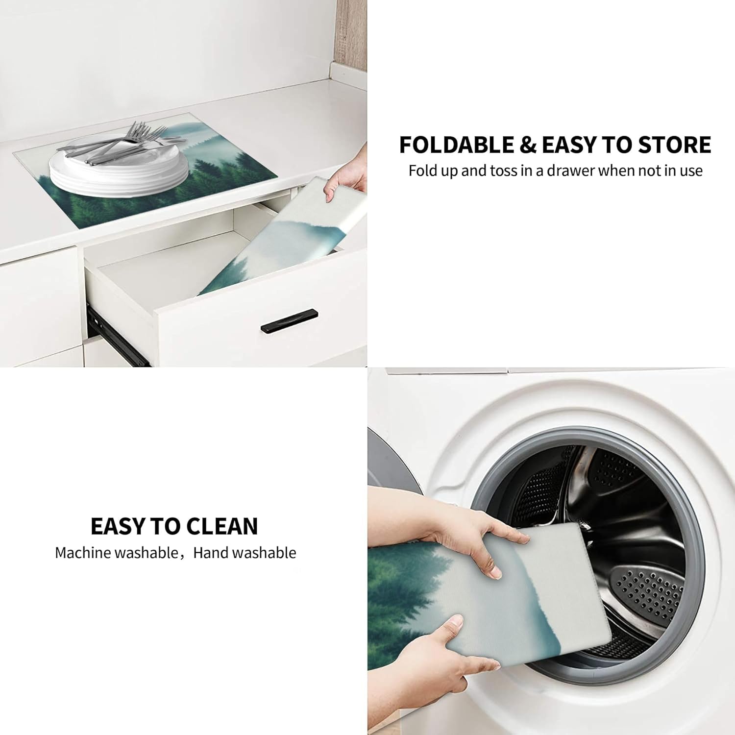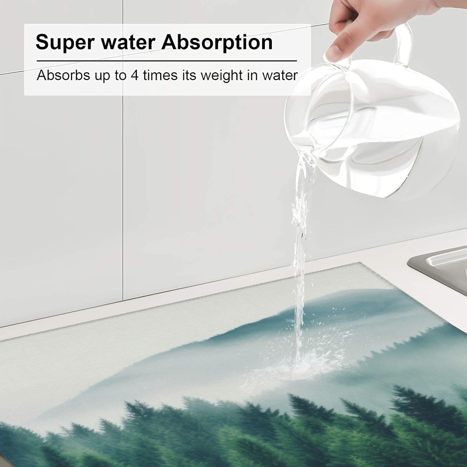 Forest Trees Mountain Dish Drying Mat 16x18 Inch, Microfiber Absorbent Fast Dry Mat Large Dish Mat Drying Kitchen Mat, Kitchen Drying Pad for Kitchen Counter Coffee Bar Decor Gifts