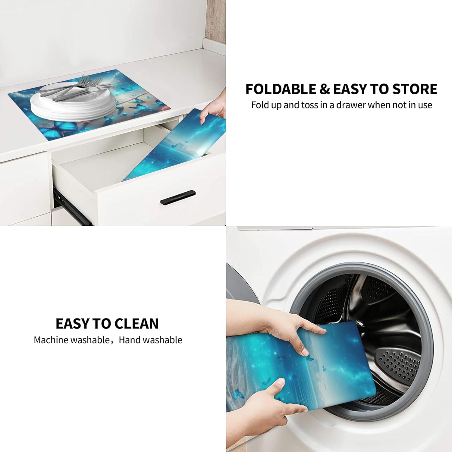 Blue Butterfly Beach Dish Drying Mat 16x18 Inch, Microfiber Absorbent Fast Dry Mat Large Dish Mat Drying Kitchen Mat, Kitchen Drying Pad for Kitchen Counter Coffee Bar Decor Gifts