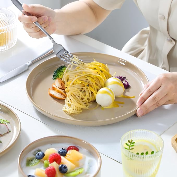 • 【Dinnerware set for 8】 Includes 8 dinner plates (10.25"), 8 salad plates (8.25"), and 8 bowls (26oz), perfect for serving everyday meals or special occasions.