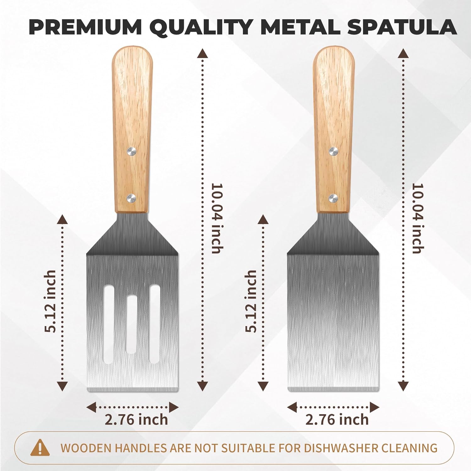 Stainless Steel Spatula Set, Metal Spatula for Cast Iron Skillet, Metal Spatulas for Kitchen Use with Wooden Handle, Ideal for Frying Steak, Pancake, Cookie, Burger, Brownie or Desserts