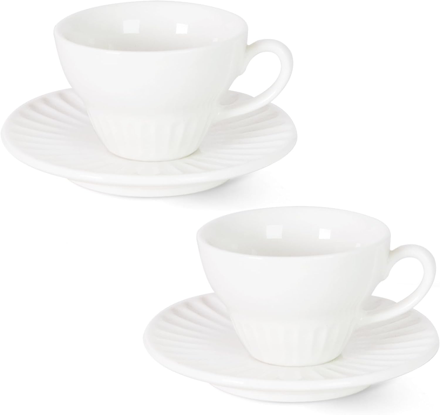 2 oz White Espresso Cups Set of 2, Ceramic Cappuccino Cups with Saucers, Durable Porcelain Tea Set & Modern Coffee Cup Collection, Coffee Lover Gifts