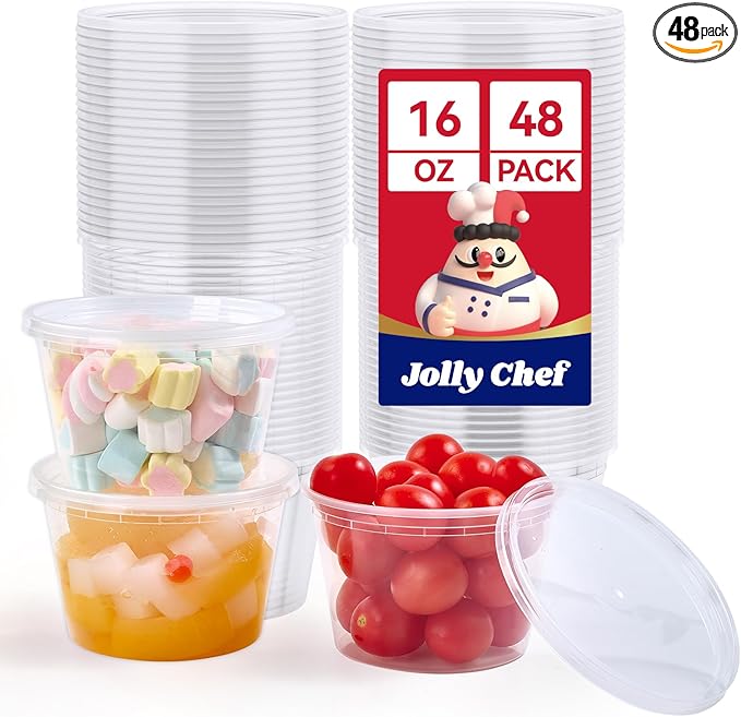 JOLLY CHEF Deli Food Storage Containers with Lids 16 OZ 48 Set, Slime, Soup, Meal Prep Containers, BPA Free,Microwavable, Freezer Safe,Takeout Meal Prep Storage