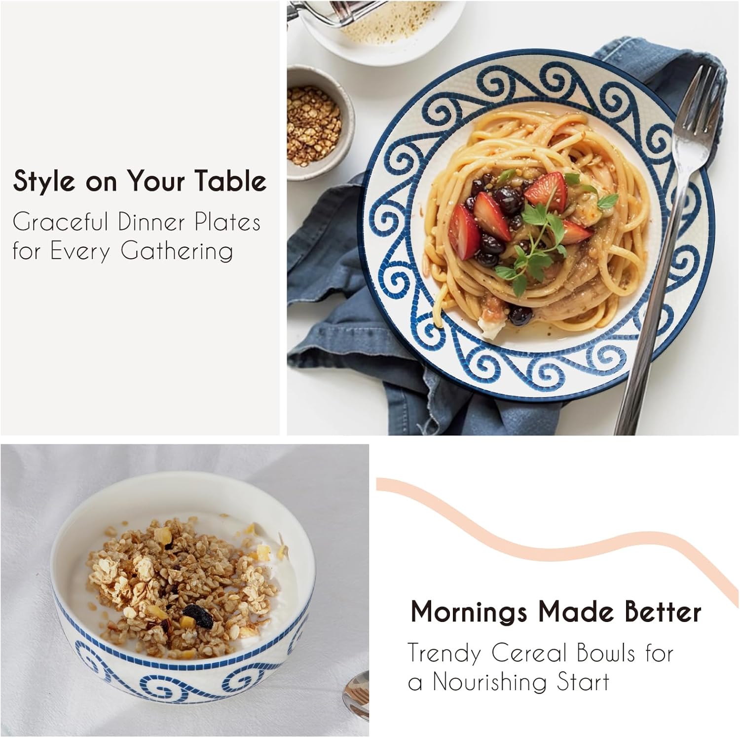 • Ideal Gift for Any Occasion: Impress with elegance -- Whether it’s a wedding, housewarming, or holiday, this JoDeVi dinnerware sets collection makes a thoughtful gift. A premium choice in plates and bowls sets for 8 with a coastal and vintage aesthetic.