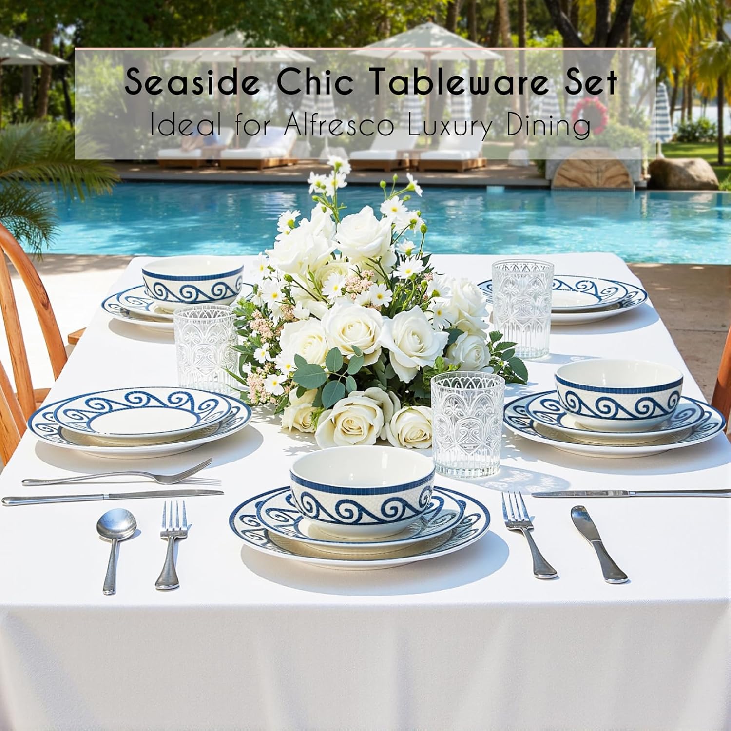 • Coastal Charm & Vintage Style: Elevate your table -- Featuring an elegant coastal design with vintage flair, these coastal dinnerware sets bring timeless charm to your meals. A stylish blend of vintage dinnerware set and modern stoneware craftsmanship.
