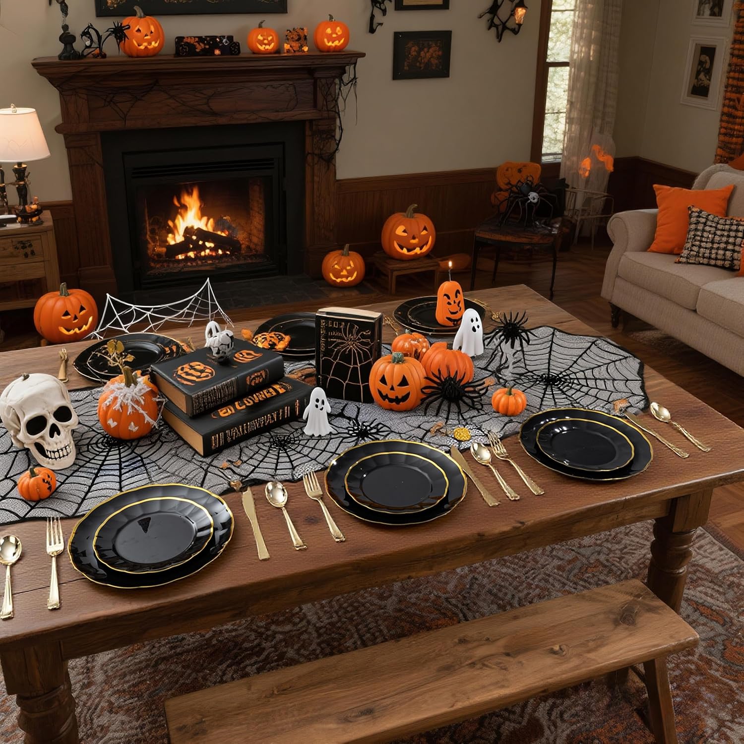 • Suitable for any occasion:Ideal for weddings,baby showers,picnics,and more,this set of black party plates and utensils suits any people and event style.From casual backyard barbecues to upscale dinner parties they effortlessly adapt to various settings.