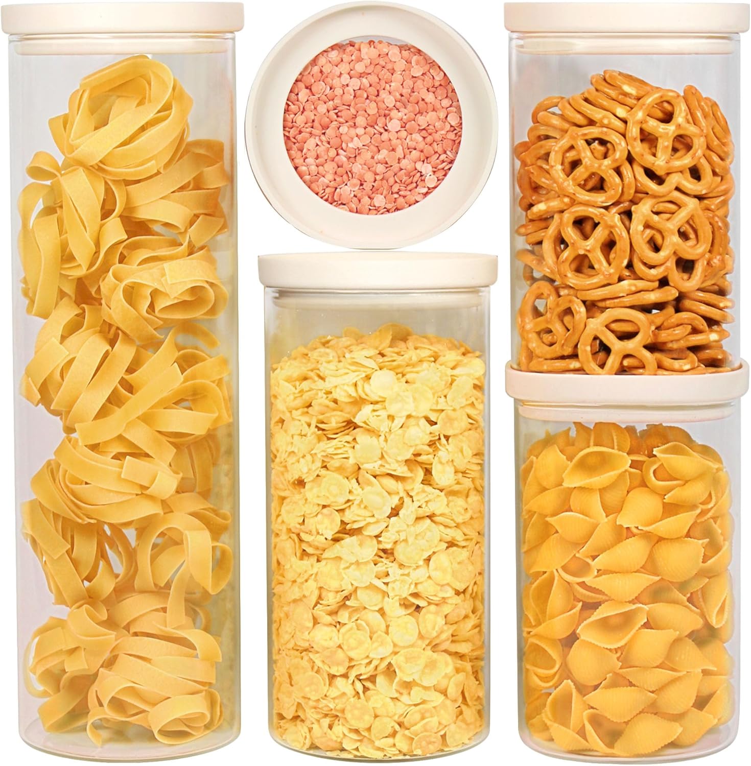 • ✅ANTI-SLIP STACKABLE LID DESIGN: All our glass lids are made with a unique stackable feature for space saving storage, the special nesting lid design makes the glass jars snuggle the lid tightly. The silicone airtight lid makes the lid seal tight, which ensures food stays dry and fresh for a much longer time. Our white glass lids jars are practical, functional, and contemporary looking anywhere you display at home or business.