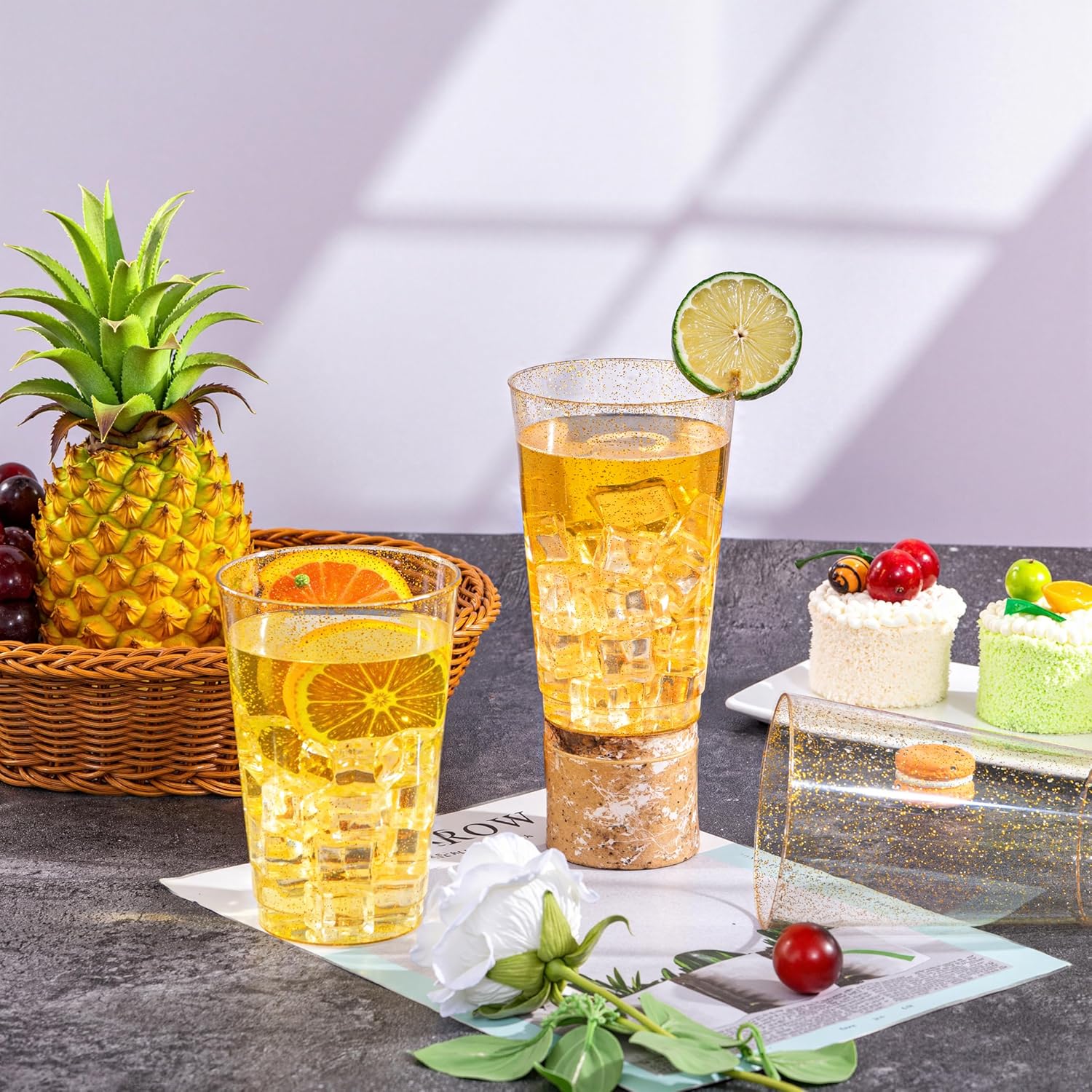I00000 50 Pack 20 oz Gold Plastic Cups, Gold Glitter Cups Disposable Plastic Wine Glasses Cocktail Glasses Premium Cup, 20 Ounce Glitter Disposable Tumblers for Party & Wedding