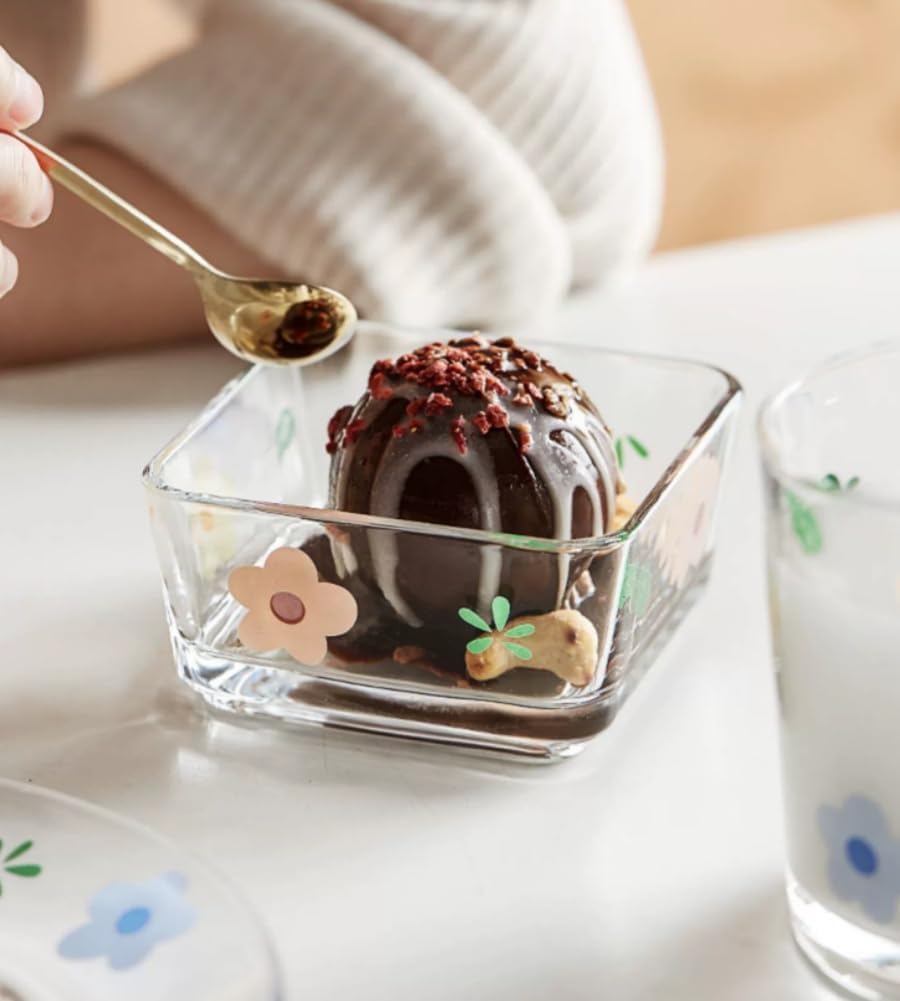 9 OZ Small Flower Candy Dish Floral Candy Bowl Cute Square Glass Bowl for Snack,Dessert,Fruit,Icecream,Yogurt,Dipping,Mini Clear Serving Bowl