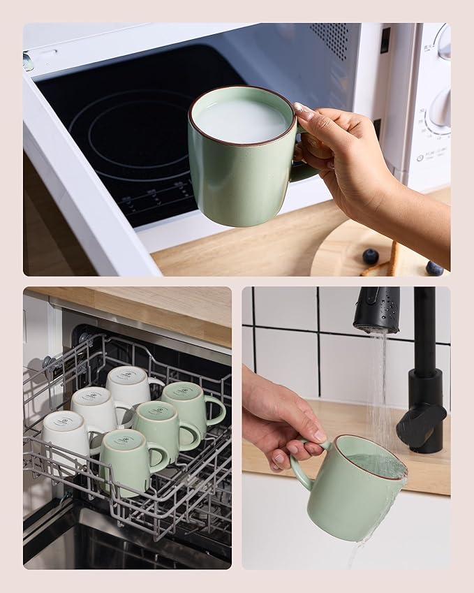 • 【STURDY AND DURABLE】ALL our mug sets are made of food grade glaze, which is fired at high temperatures to produce a smooth and durable surface, and can be used for dishwasher, microwave, oven and freezer