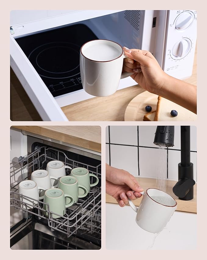 • 【STURDY AND DURABLE】ALL our mug sets are made of food grade glaze, which is fired at high temperatures to produce a smooth and durable surface, and can be used for dishwasher, microwave, oven and freezer