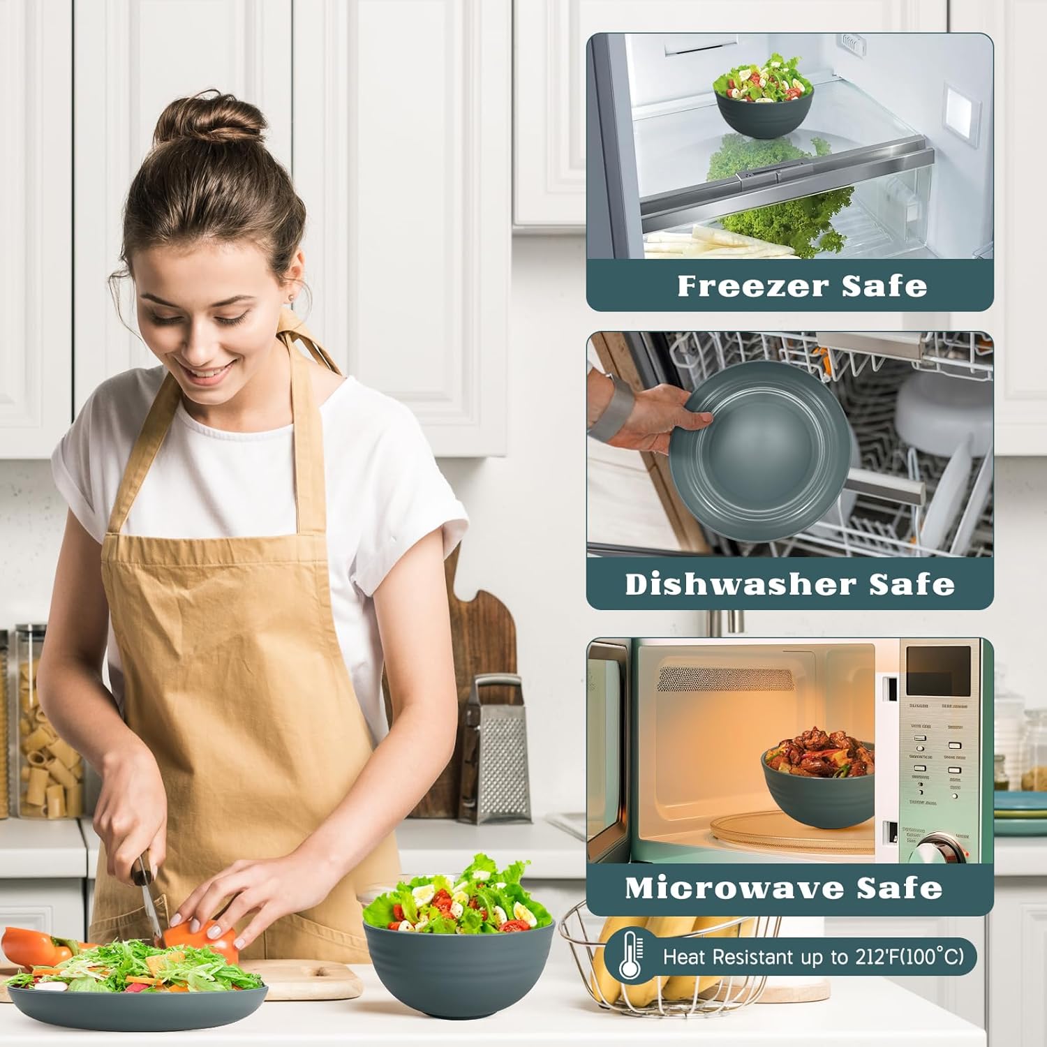 • Natural Material: The wheat straw tableware set is made of natural wheat straw and PP material, safe and odorless, So HANMFEI plastic dinnerware sets are unbreakable instead of the conventional crystal or porcelain dinnerware,you don't worry about shattering when dropped and bumped. It's sturdy,lightweight,durable,safe and healthy for everyone to use, especially for kids and the elderly.