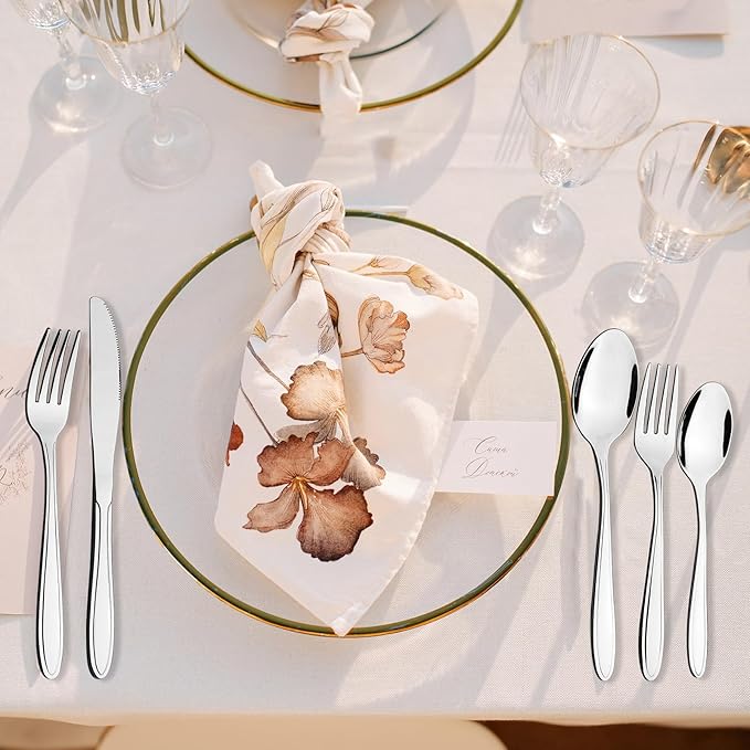 • Package includes 8.4" dinner spoon, 8" dinner fork, 9.1" dinner knife, 7.2" dessert spoon, 7.1" dessert fork, 12 pieces of each utensil