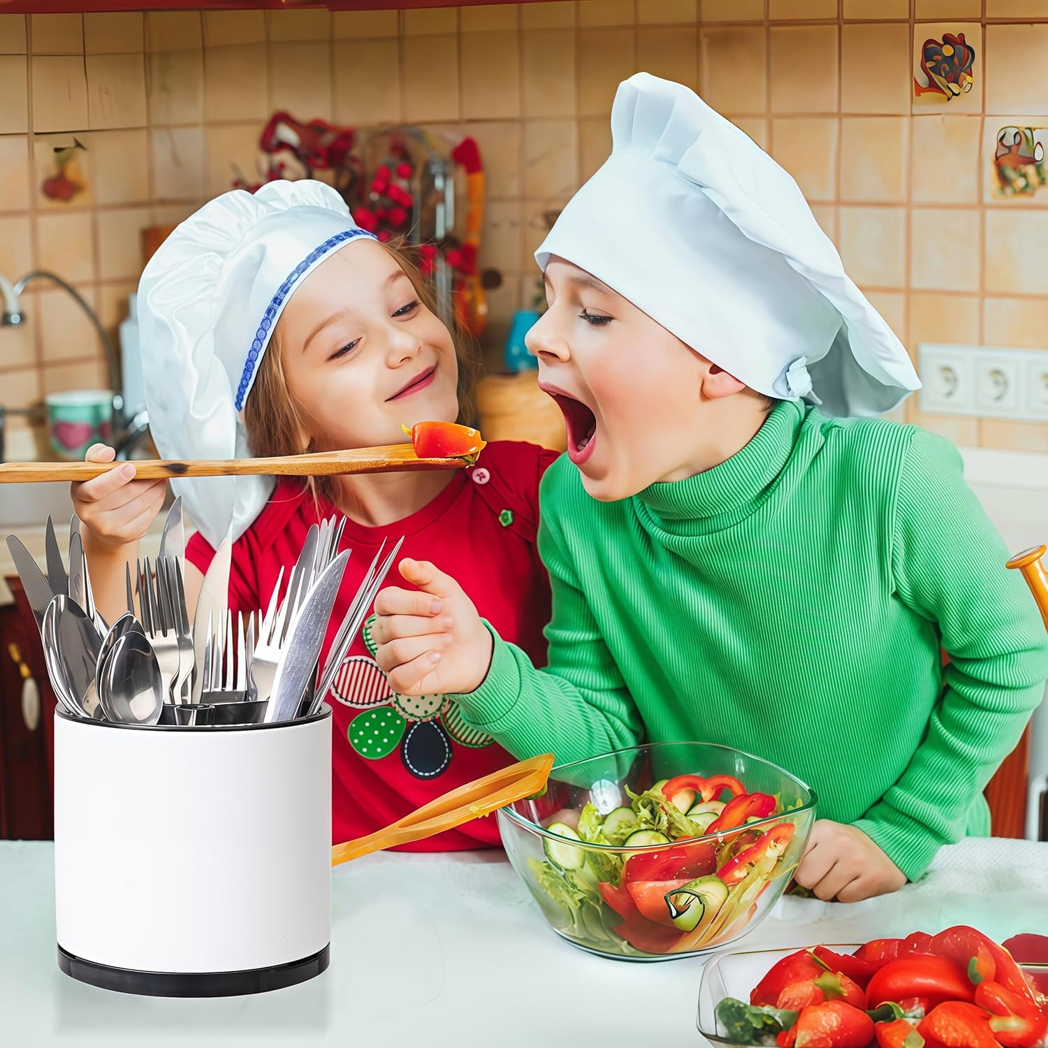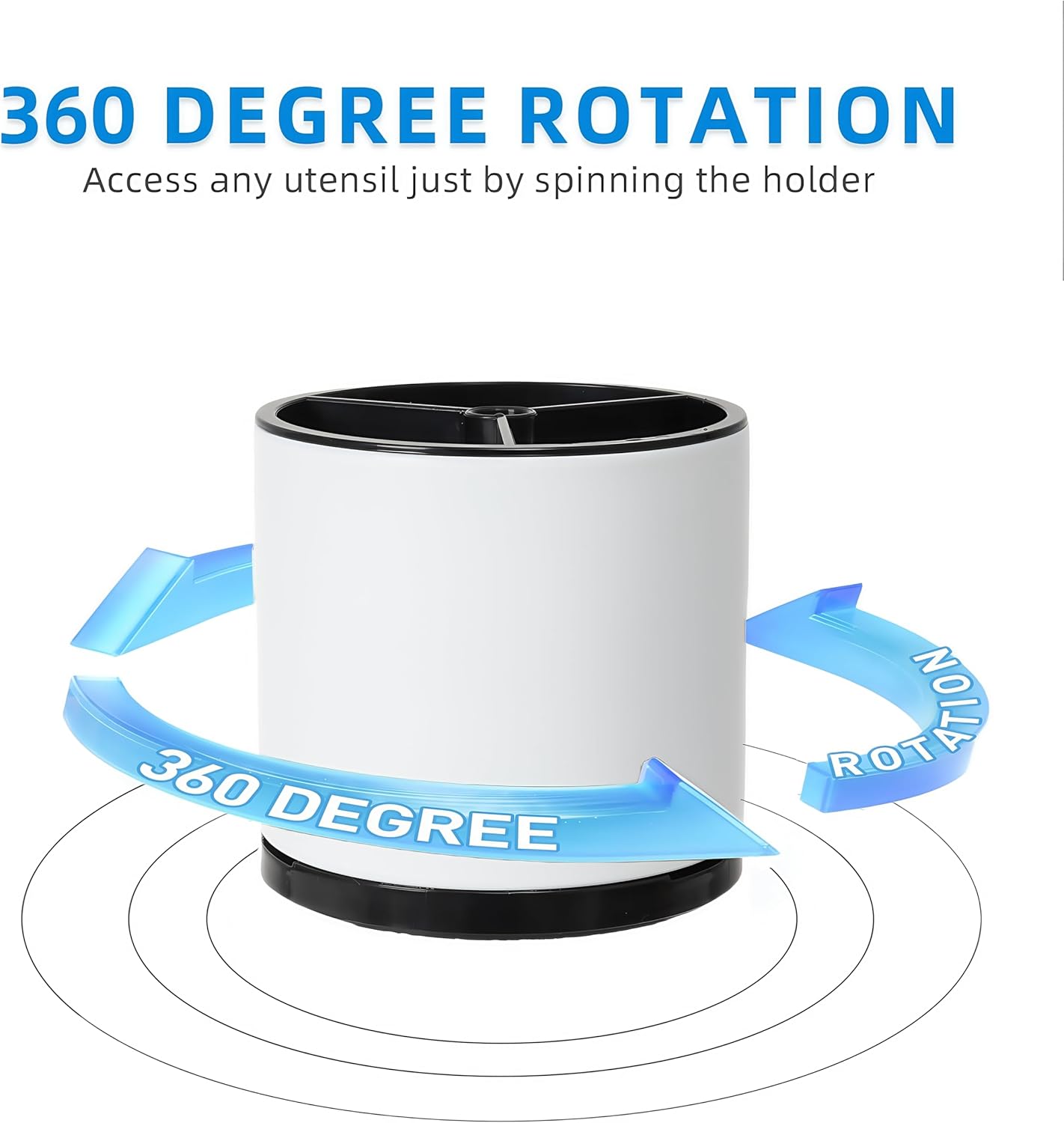 • 360° Rotating Design: Experience unparalleled convenience with our smooth-gliding, 360-degree rotation. Simply spin the holder to effortlessly access any utensil you need, eliminating the need to rummage through a tangled mess. This innovative feature transforms your kitchen storage into a seamless, efficient experience.