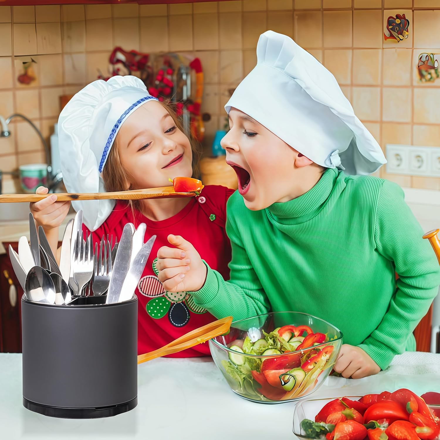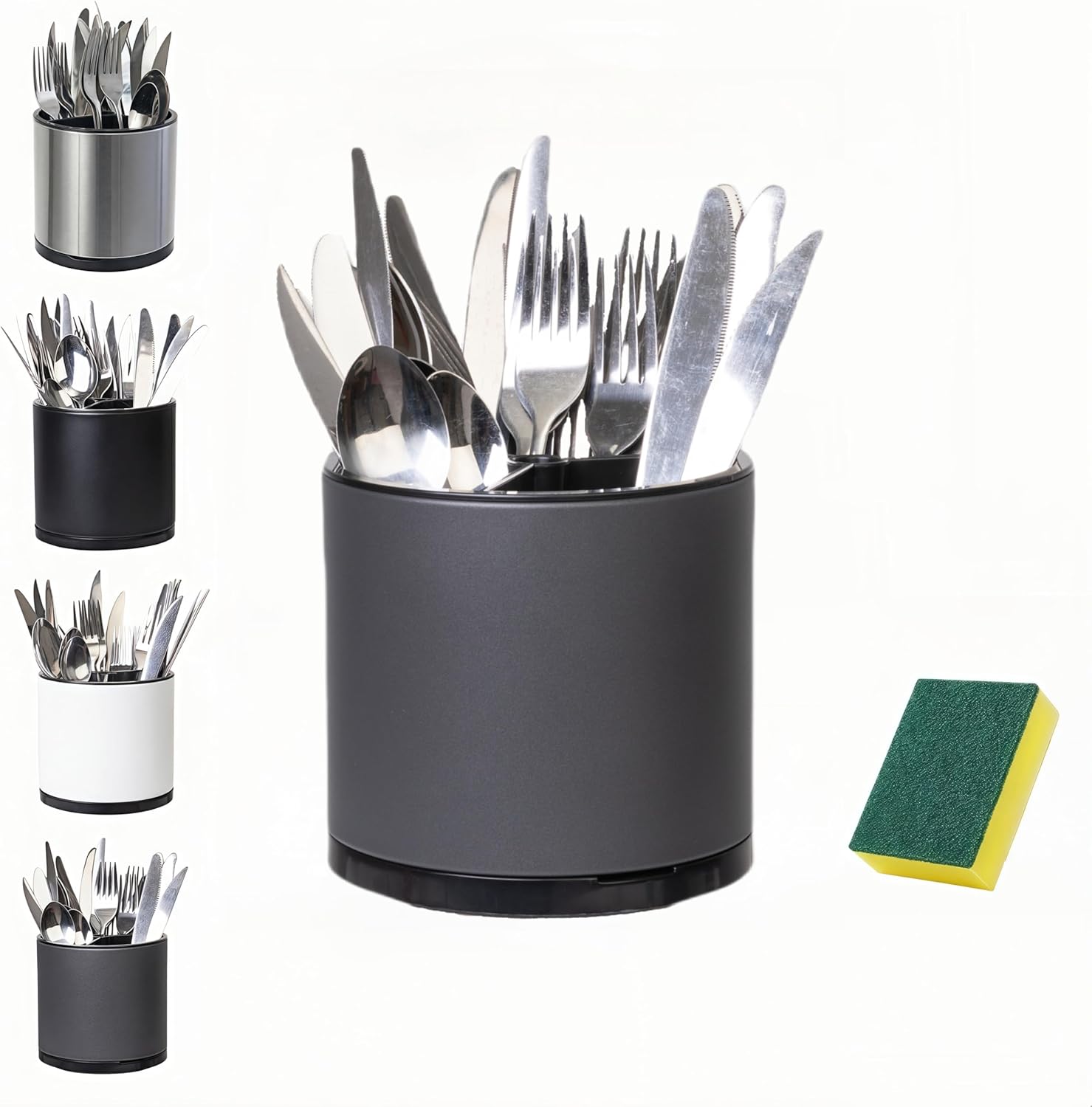 • 360° Rotating Design: Experience unparalleled convenience with our smooth-gliding, 360-degree rotation. Simply spin the holder to effortlessly access any utensil you need, eliminating the need to rummage through a tangled mess. This innovative feature transforms your kitchen storage into a seamless, efficient experience.