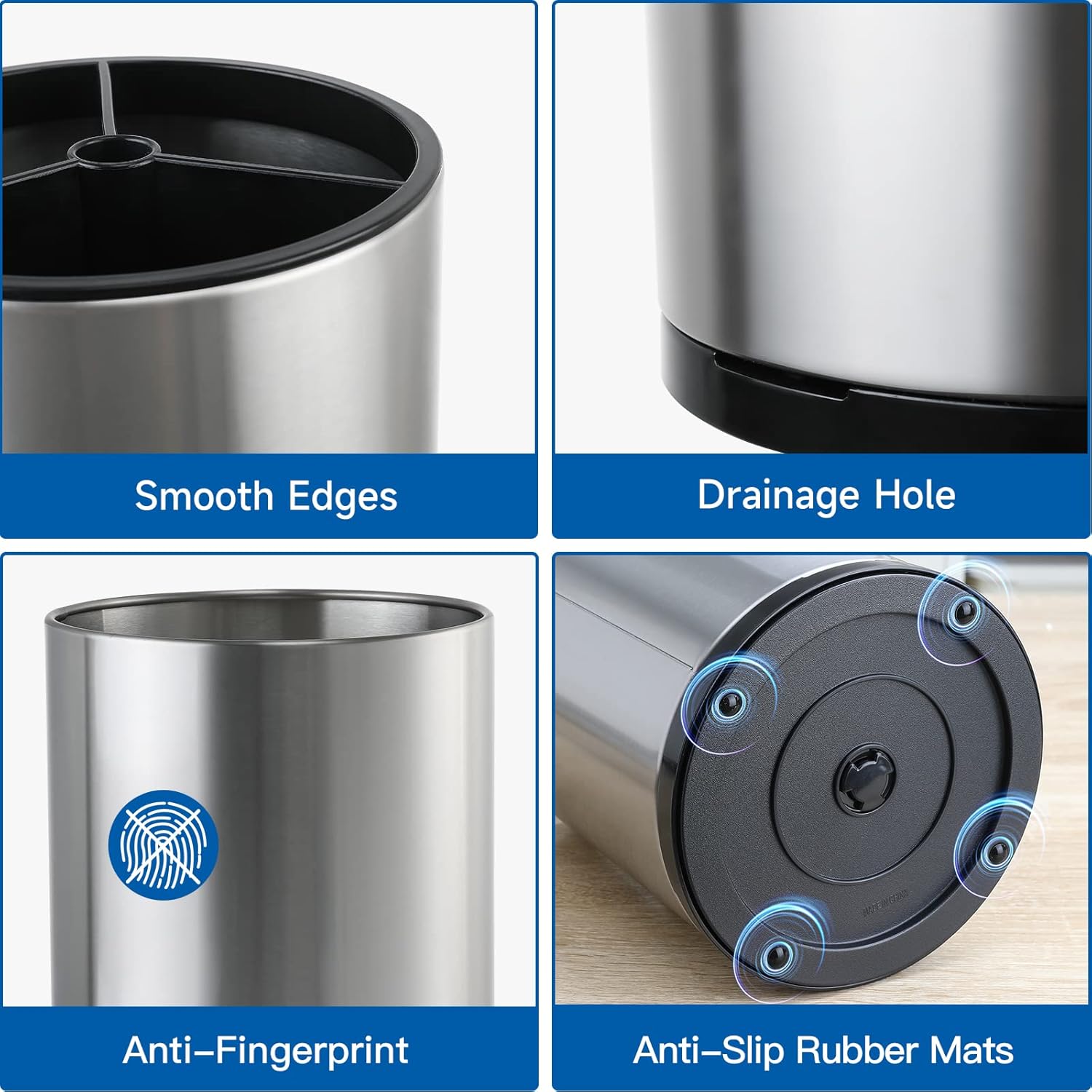• Fingerprint-Resistant Surface: Elevate your kitchen's aesthetic with our special fingerprint-resistant coating. This advanced finish repels fingerprints and smudges, maintaining a sleek, polished look that complements any kitchen decor. It's the perfect blend of beauty and practicality, ensuring your utensil holder remains a beautiful focal point.