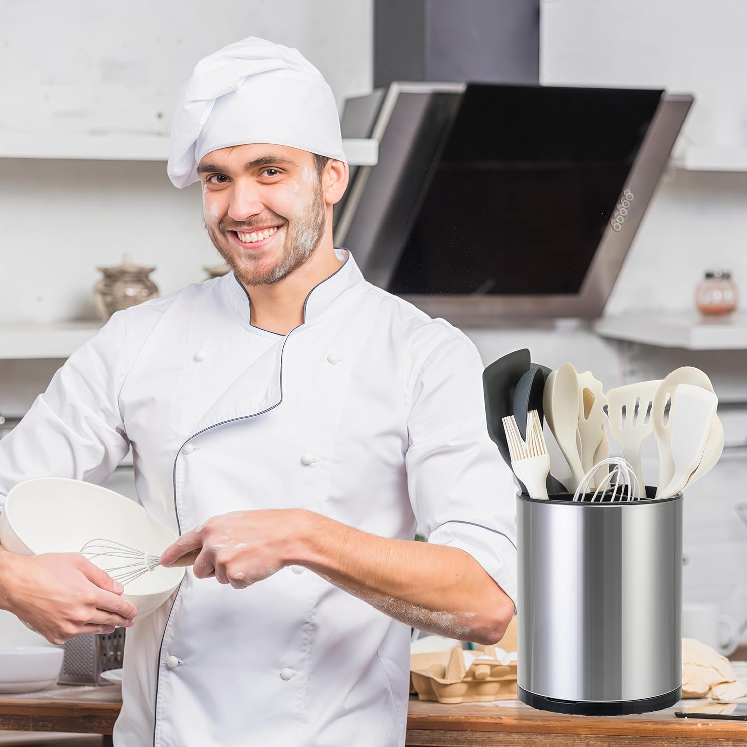 Utensil Holder,Large 360°Rotating Kitchen Utensil Holder For Counter,Cooking Silverware Organizer Stainless Steel Caddy Flatware Spoon Spatula Tool Cutlery Container