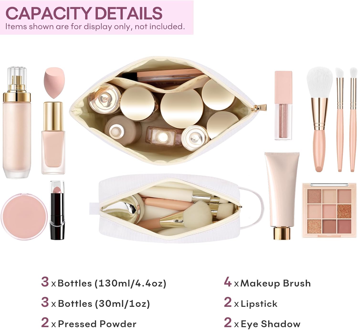 • Convenient and Roomy: Available in two compact sizes, 11.02" x 3.35" x 7.48" and 8.5" x 2.56" x 3.54", this cosmetic bag can hold all your makeup and skincare items based on their size. Slightly larger than the palm of your hand, it is easy to carry while ensuring durability and portability—making it not only a great travel gift for women but also perfect stocking stuffers for teen girls