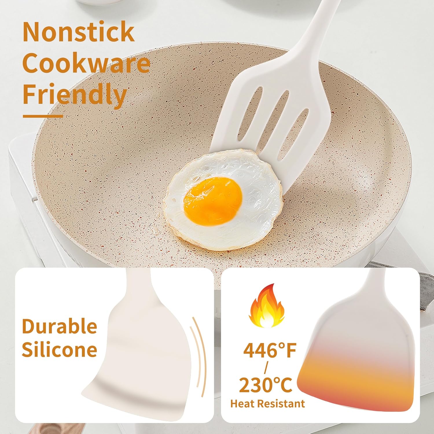 • DURABLE & EASY CLEANING: 446°F Heat Resistant premium silicone utensils set is not easily cracked and melted. Just a quick wash with warm soapy water. (Silicone, Please Not put on heat surface for a long time).
