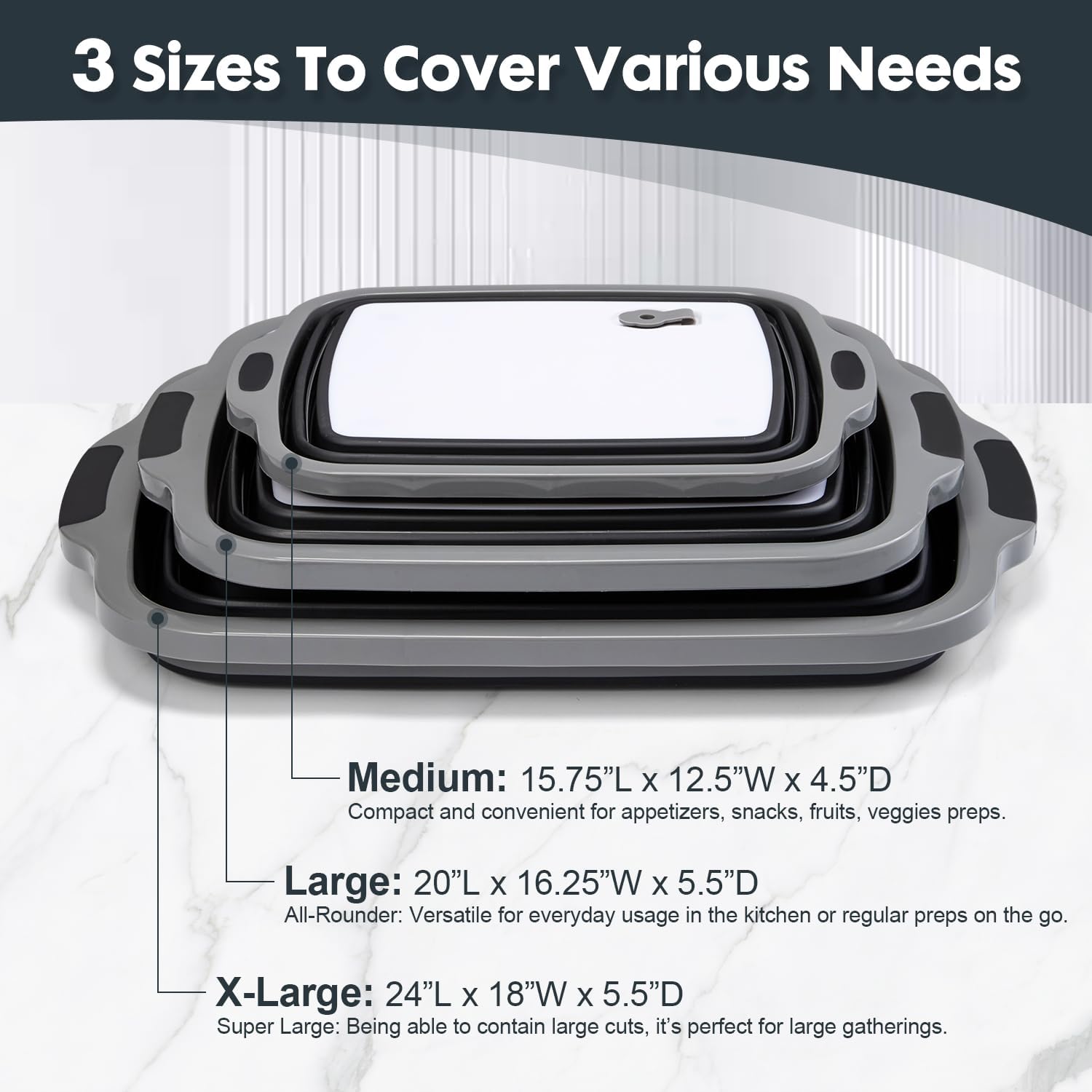 • 3 Sizes To Cover Various Needs: Medium size for appetizers, fruits, veggies, Large size for everyday usage and X-Large to contain large cuts for large gatherings. We have all these covered!
