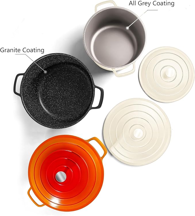 • Versatile and Multi-Purpose Cookware-This Cast aluminum dutch oven can meet all your cooking tasks, serving for dishes-from bread baking, braising to roasting. This is great for stir-fry, soups, stews and sauces as well. The functional all in one pan saves space, keeping the kitchen tidy.