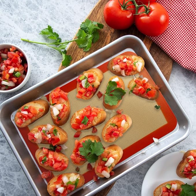 • 【FOOD GRADE MATERIALS, SAFE & HEALTHY】Not need parchment paper any more. Premium liquid silicone & reinforced fiberglass contribute to the high quality of AMYONE quarter sheet mats. Non-toxic and BPA free. Can be used with oven trays or biscuit sheets to improve overall heat distribution and air circulation to achieve uniform and consistent results without scorching or cooking spots.