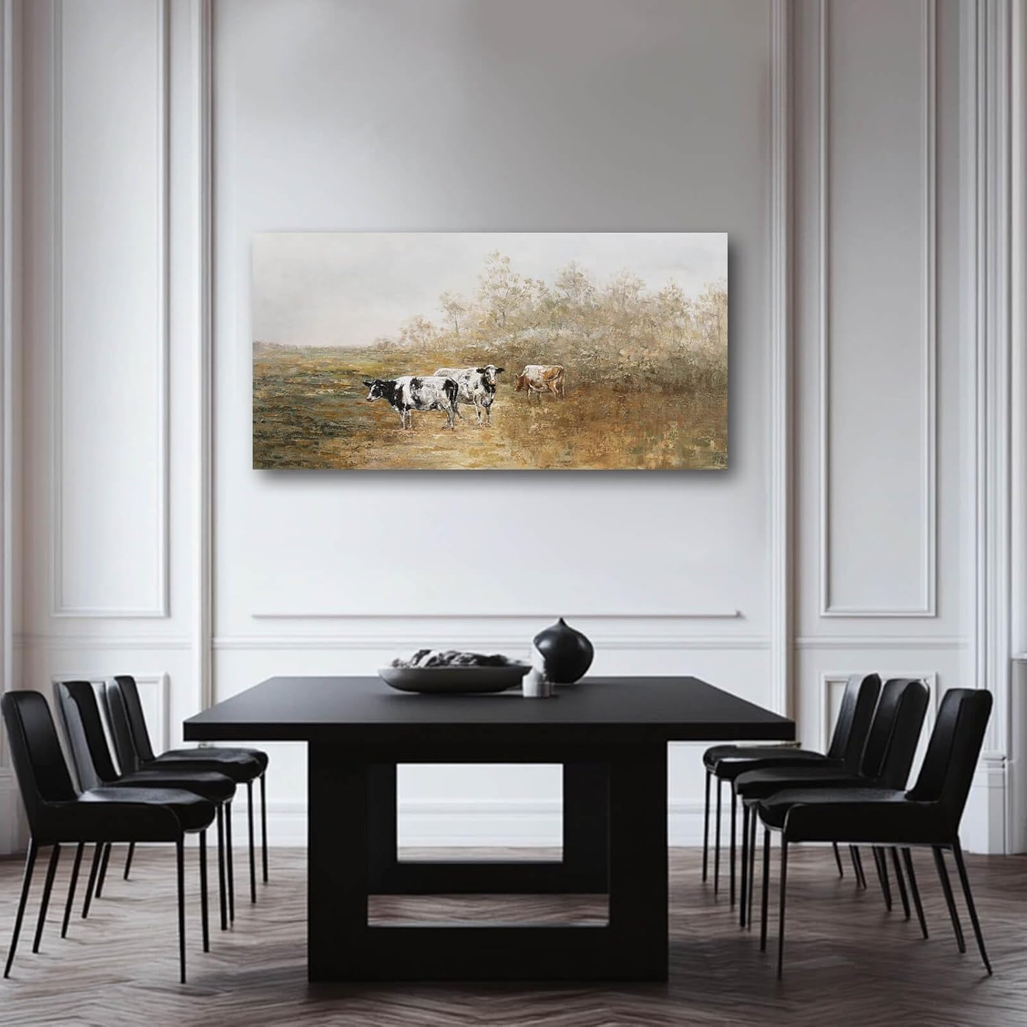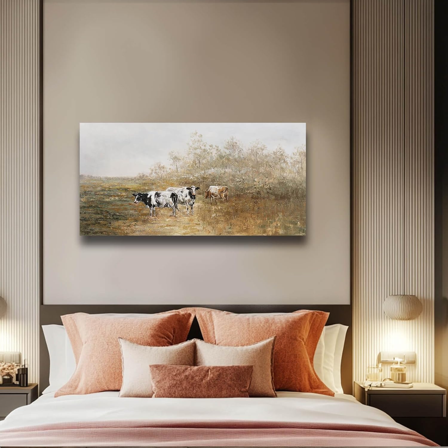 Farmhouse Cute Cattle Wall Art Framed Wall Decor Animal Theme Artwork Cow Picture for Home Office Bedroom Living Room Decoration 24x48 Inch