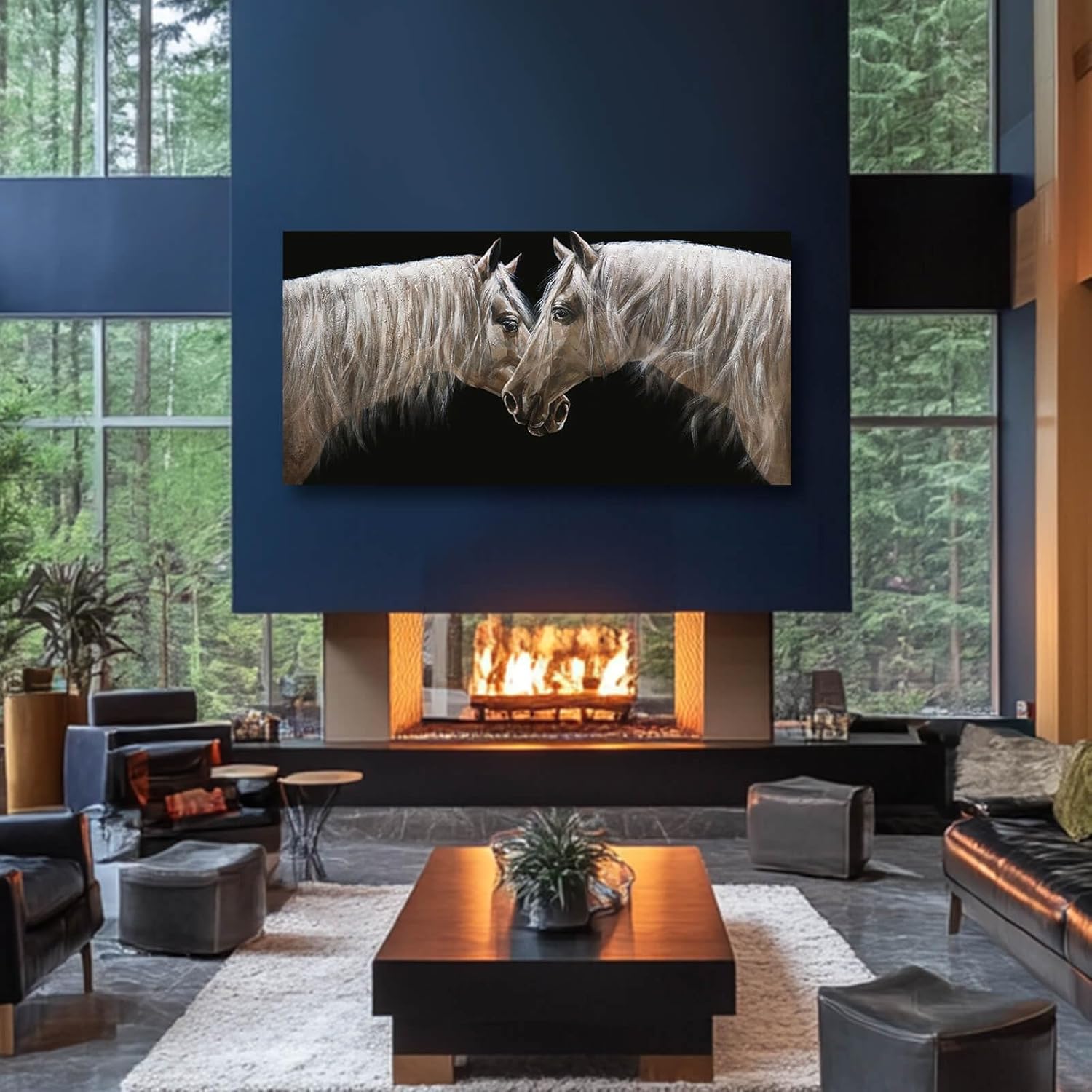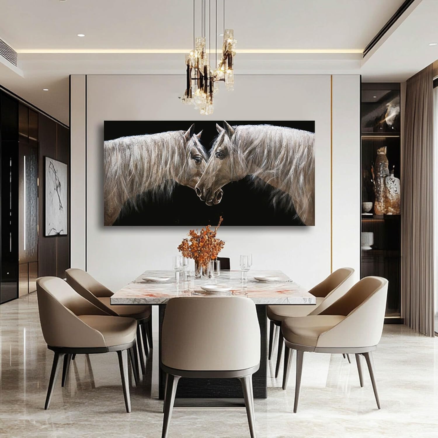 White Wall Art for Living Room Horse Wall Decor Animal Pictures for Wall Poster Prints Office Artwork Decorations 29"x58"