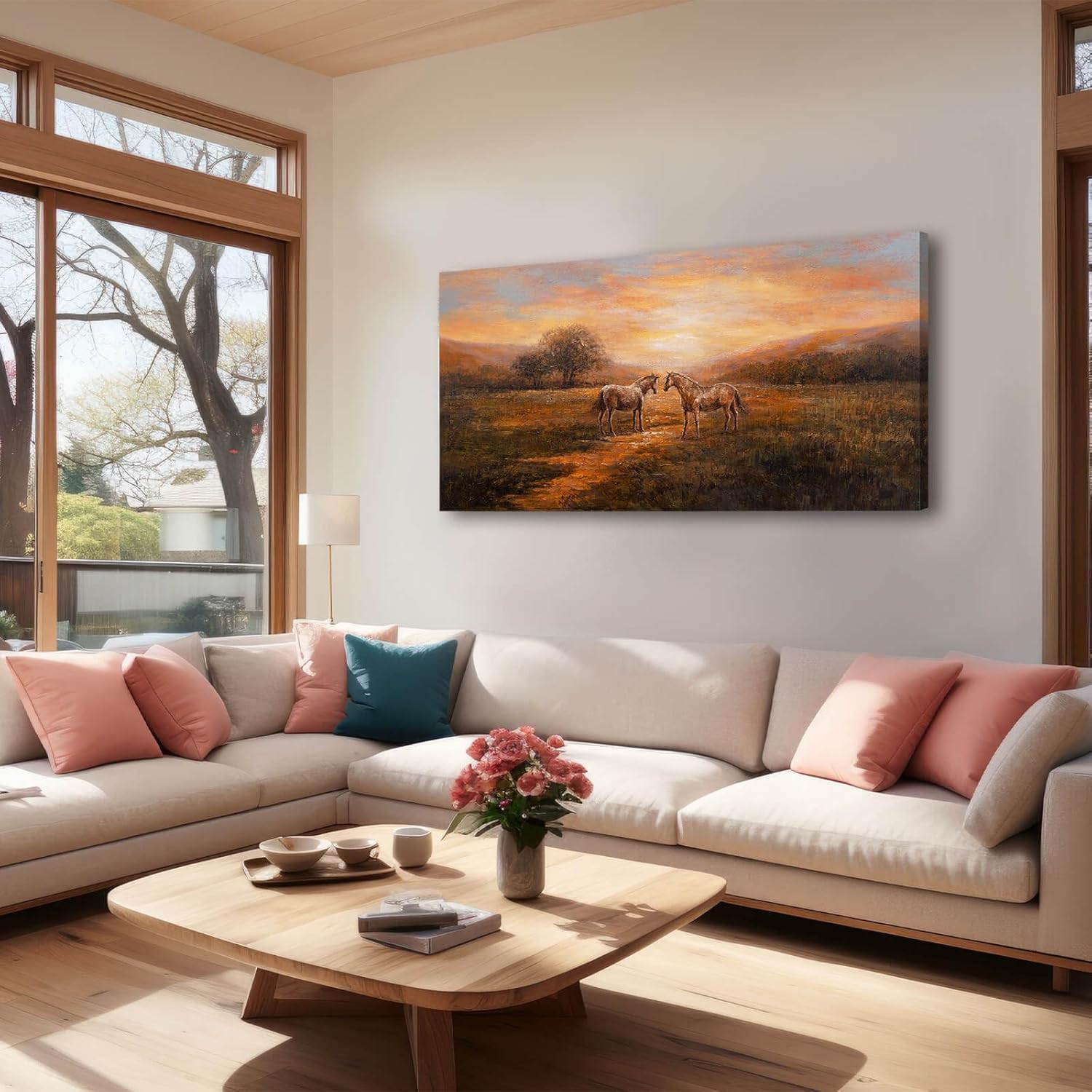CHUDANHAO Large Wall Art Canvas Pictures Bedroom Wall Art Decor Horse Artwork Rustic Orange Decorations Nature Wall Decor for Living Room 24"x48"