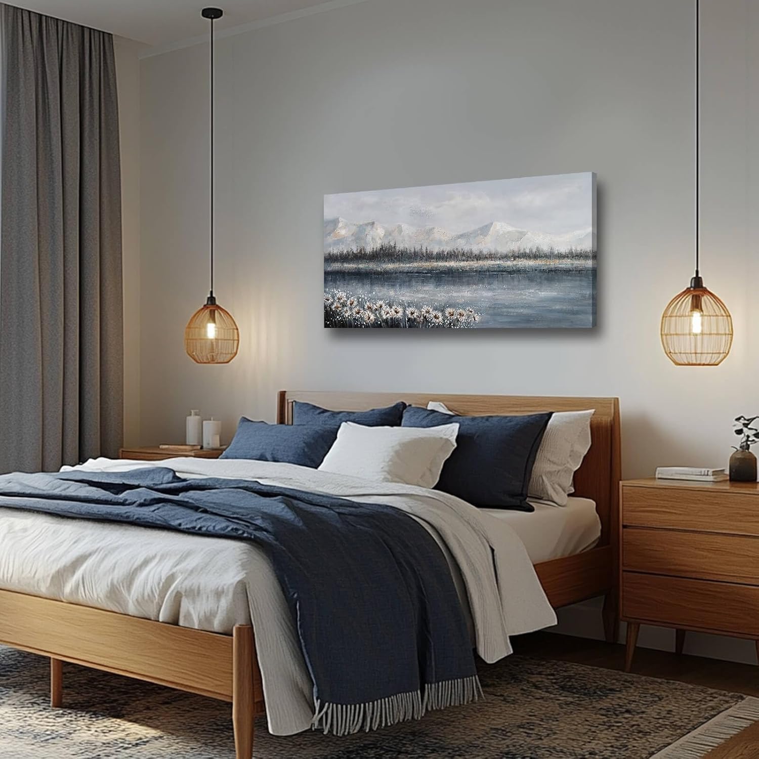• Easy to hang: High quality canvas is stretched and fixed on the wood frame to make it more textured. High quality canvas and high quality wood frame extend the life of the painting. Hooks are reserved behind the wood frame for easy hanging.