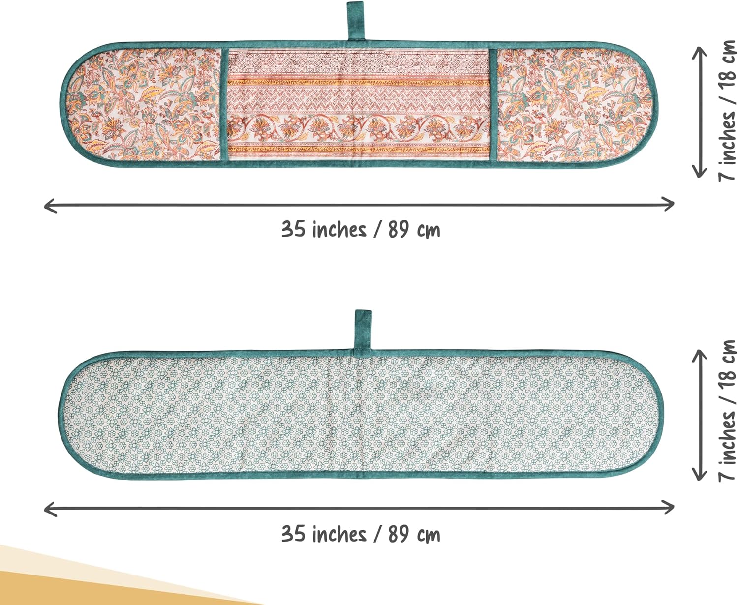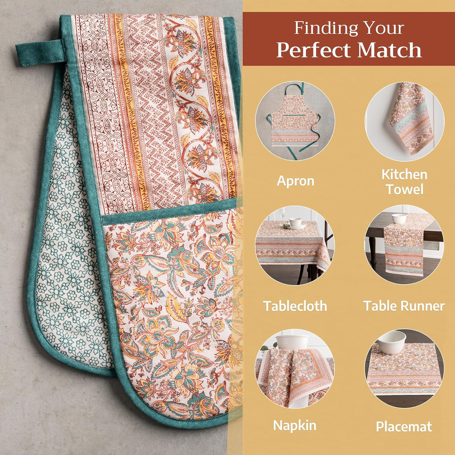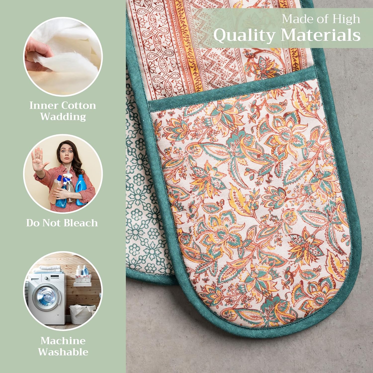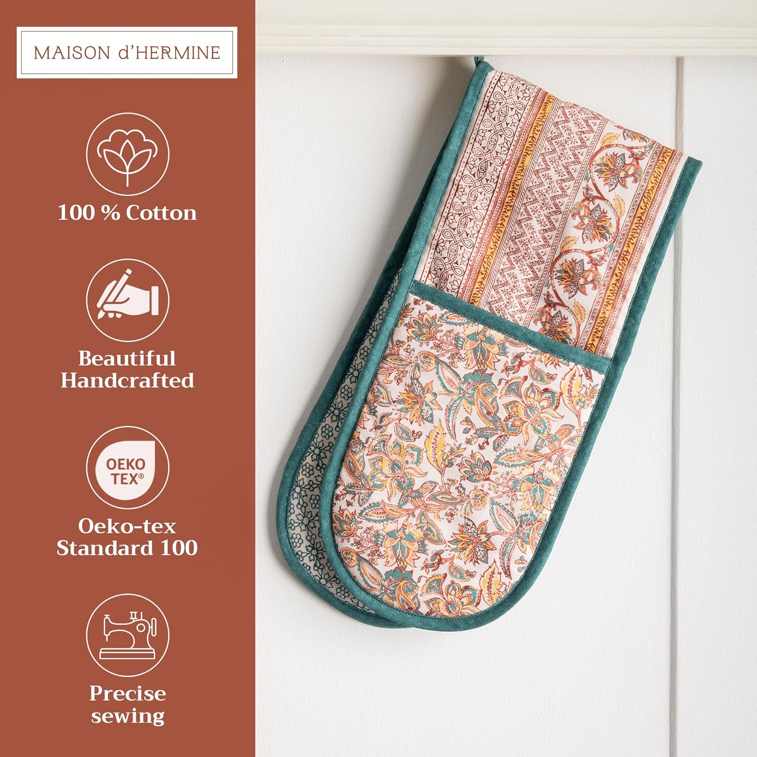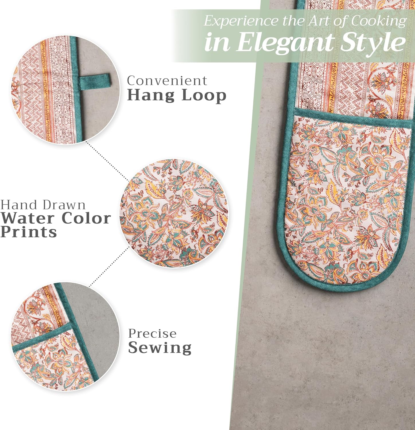 • Package Includes: Set includes 1 double oven mitt measuring 7.5" x 35", perfect for baking, roasting, and cooking. Made from 100% cotton for reliable heat protection and comfort. Designed in Europe and made in India
