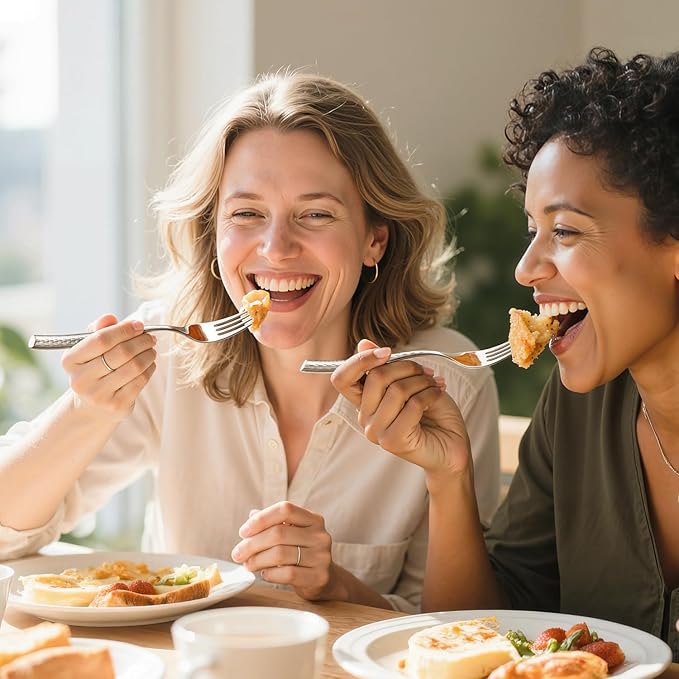 • Premium 18/10 Stainless Steel: High-quality 18/10 stainless steel ensures durability, rust resistance, and long-lasting shine. Safe for food contact and daily use. Meanwhile, the material is sturdy ensuring that silverware will not bend.