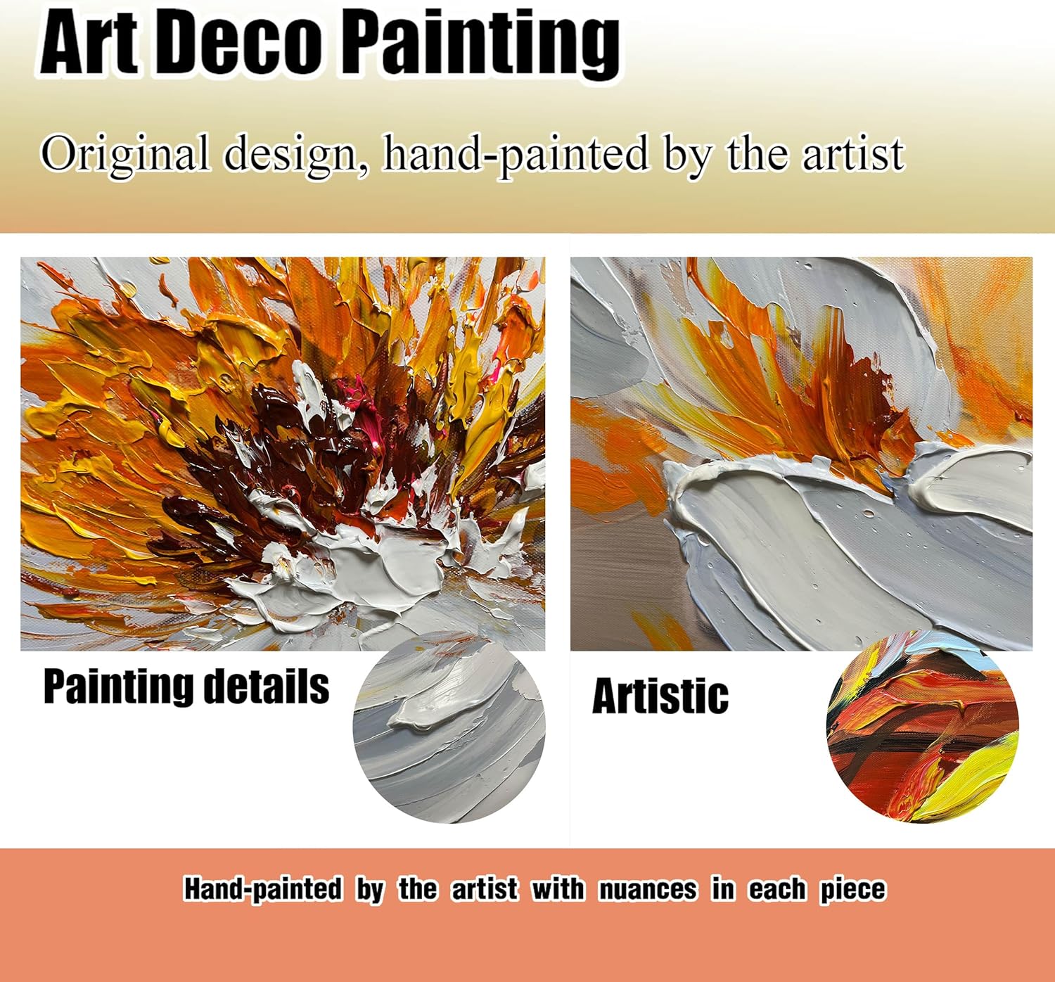 • 【white and gold flower Canvas Mural Size】The size is 60" x 30". Since each painting is hand-painted, 3D textured canvases, the actual painting may differ slightly from the product image. Due to different monitor brands, the actual wall painting color may be slightly different from the product picture.