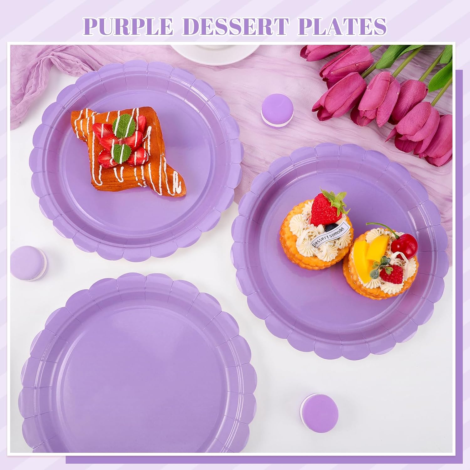 • Cute Scalloped Design: The edges of purple disposable plates are designed with scalloped pattern, which highlights cute and elegance of plates, which can set off the party atmosphere