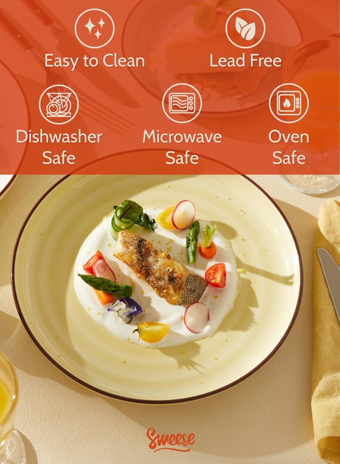 • DESIGNED TO PREVENT SPILLS: 10-inch plates with a raised lip keep your pasta, salad, or steak neatly contained, making every bite as graceful as the last.