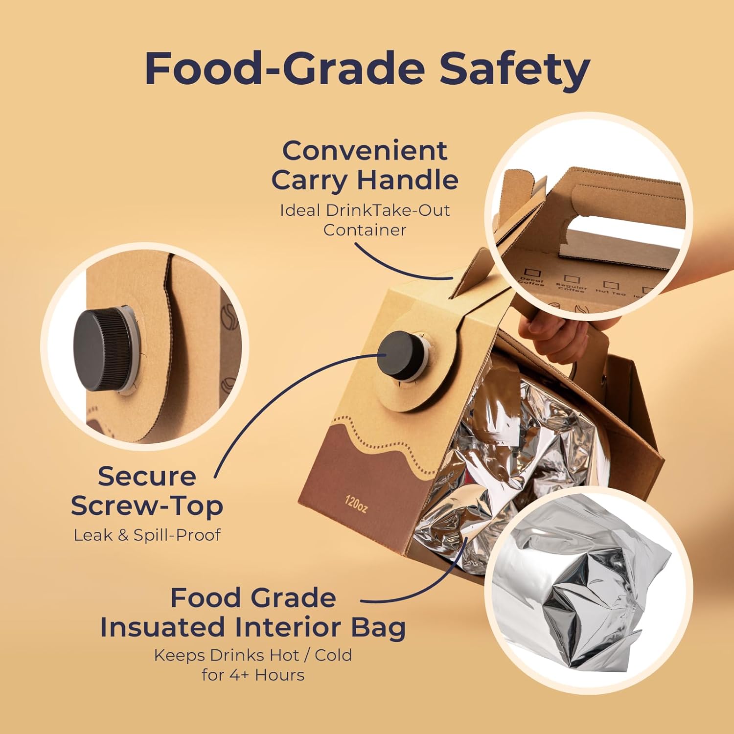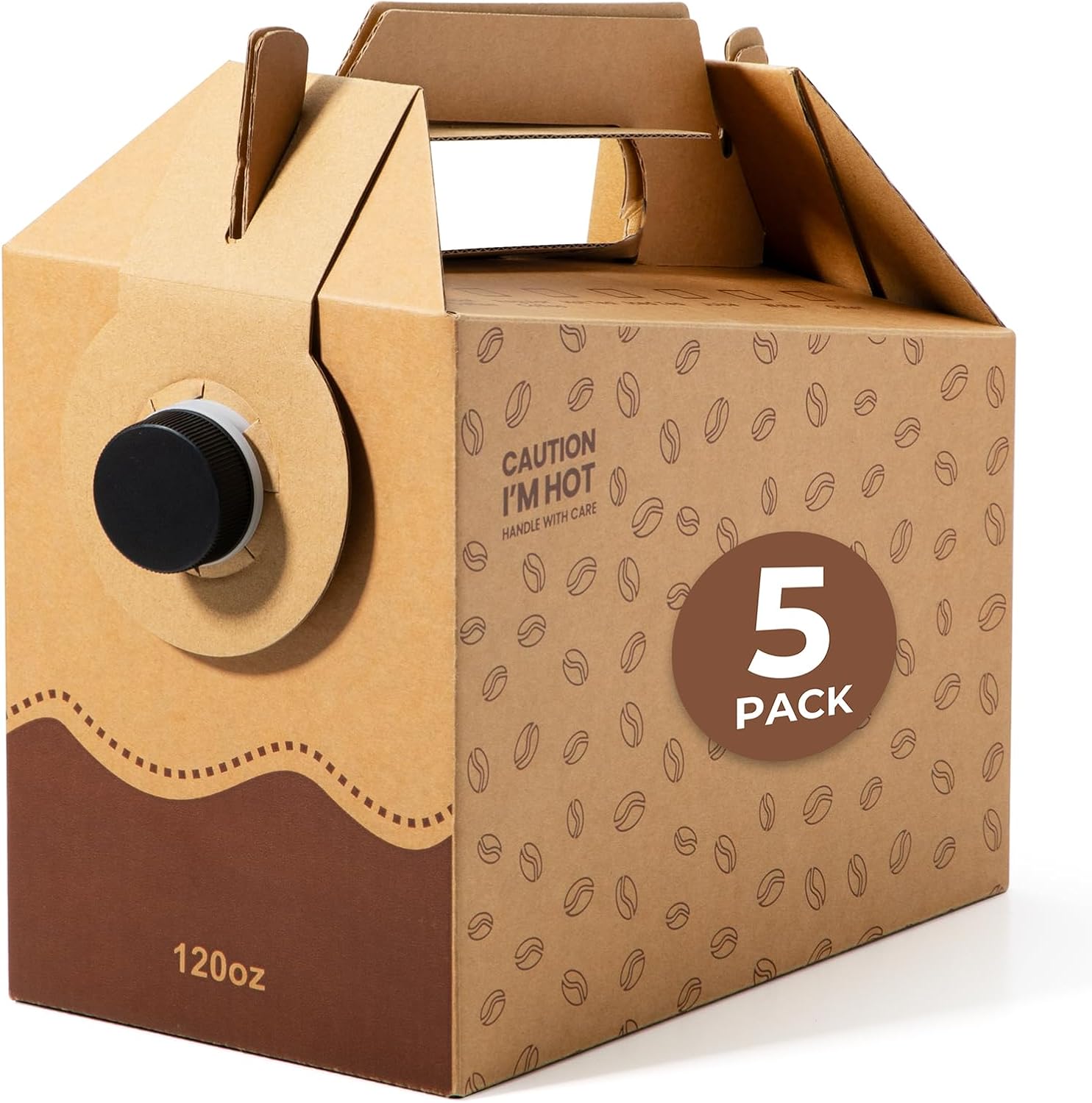 Fit Meal Prep 5 Pack 120 oz Disposable Coffee Dispensers with Handle, Insulated to Go Storage Containers, Portable Coffee Box Cold Hot Drink Dispenser Bulk for Party, Catering, Office, Take Out